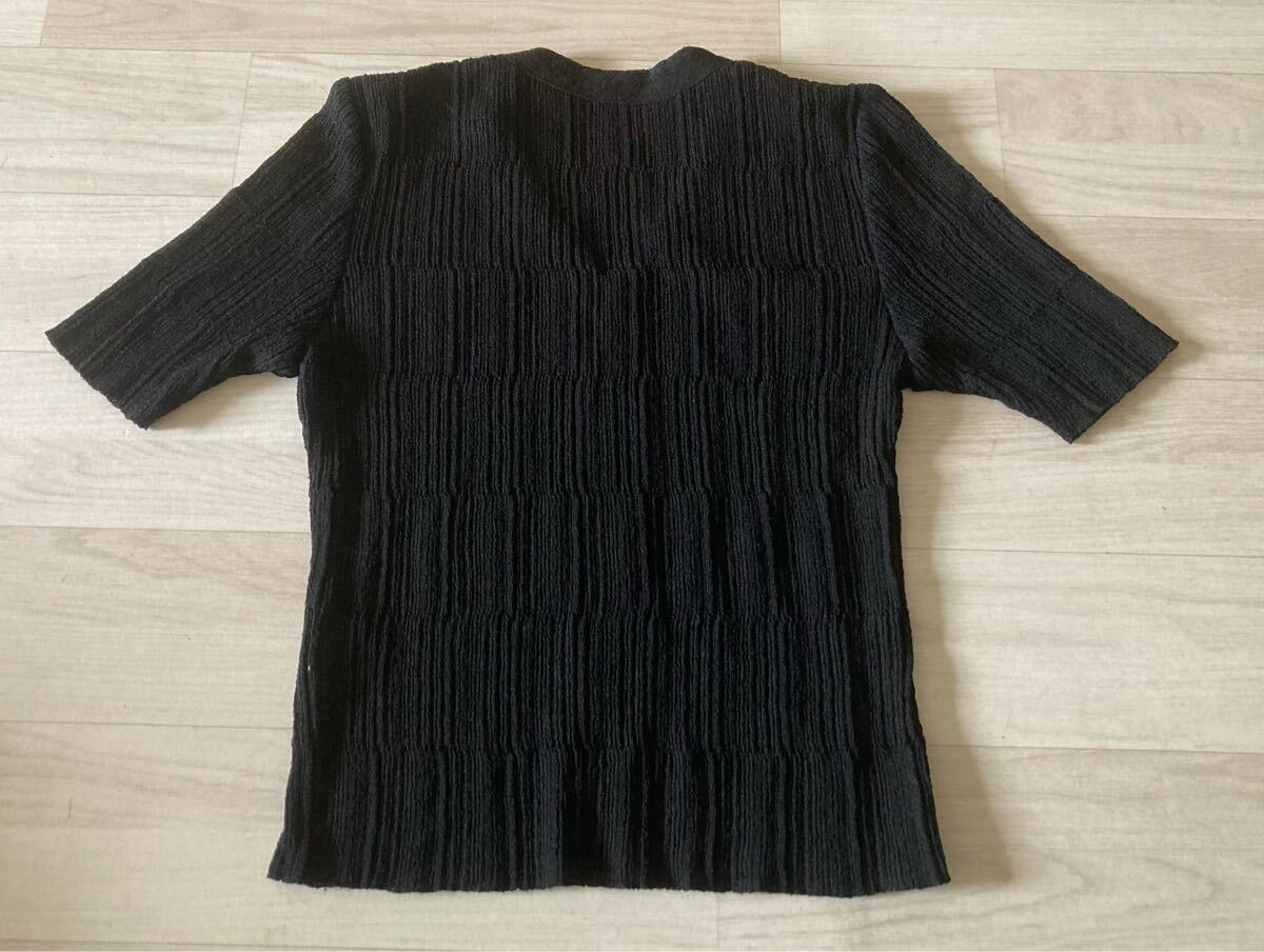 Caravan透け感のあるリブ編みの黒いVネック半袖トップス。半袖カットソー| 出价者 | 信用 | 价格 | 时间 |