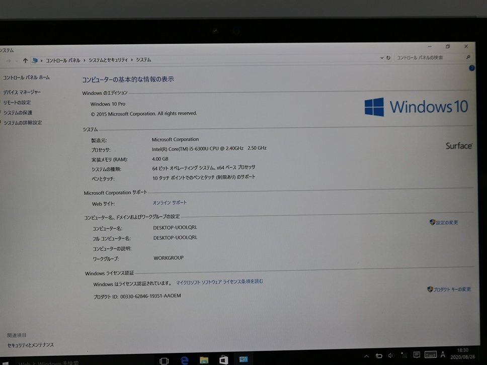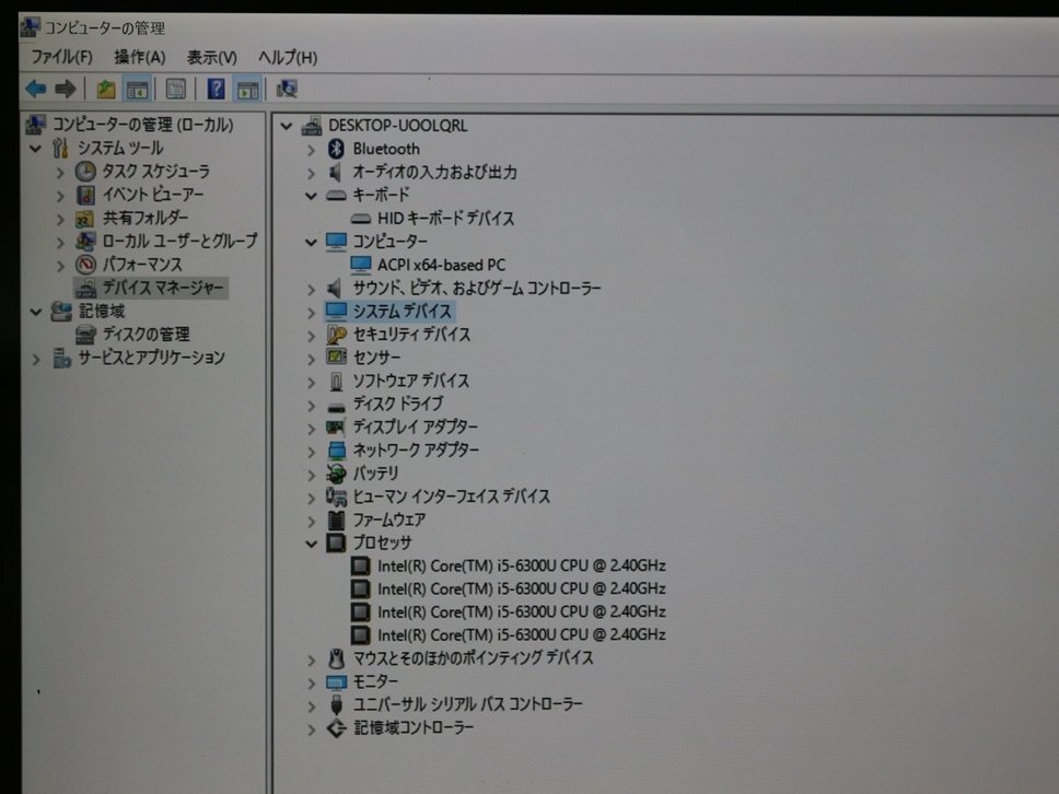 | プロセッサー | Core i5-6300U(2.40GHz) |