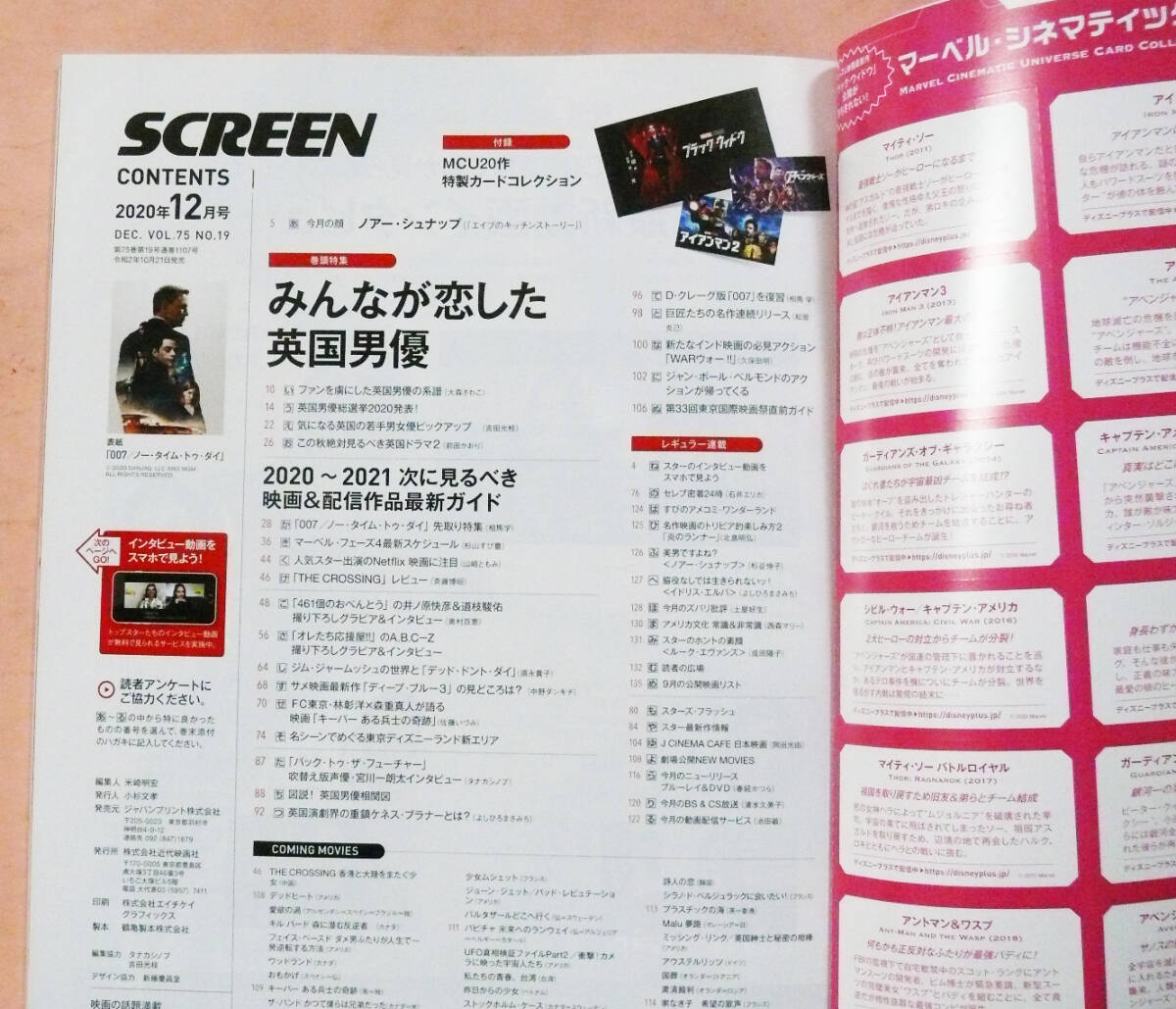 古雑誌/スクリーン誌「みんなが恋した英国男優/007最新作」2020年12月号(higa)