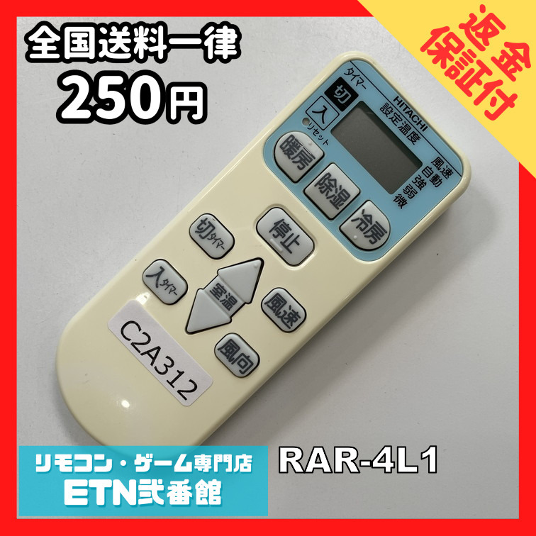 C2A312 【送料250円】エアコン リモコン / 日立 ヒタチ HITACHI RAR-4L1 動作確認済み★即発送★ 冷房 暖房