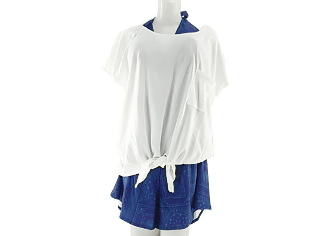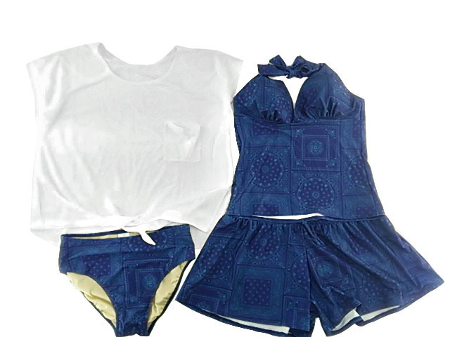 UVカットのTシャツ付レディース水着4点セット (タンキニ&Tシャツ&パンツセット 大きいサイズ10Lサイズ)。