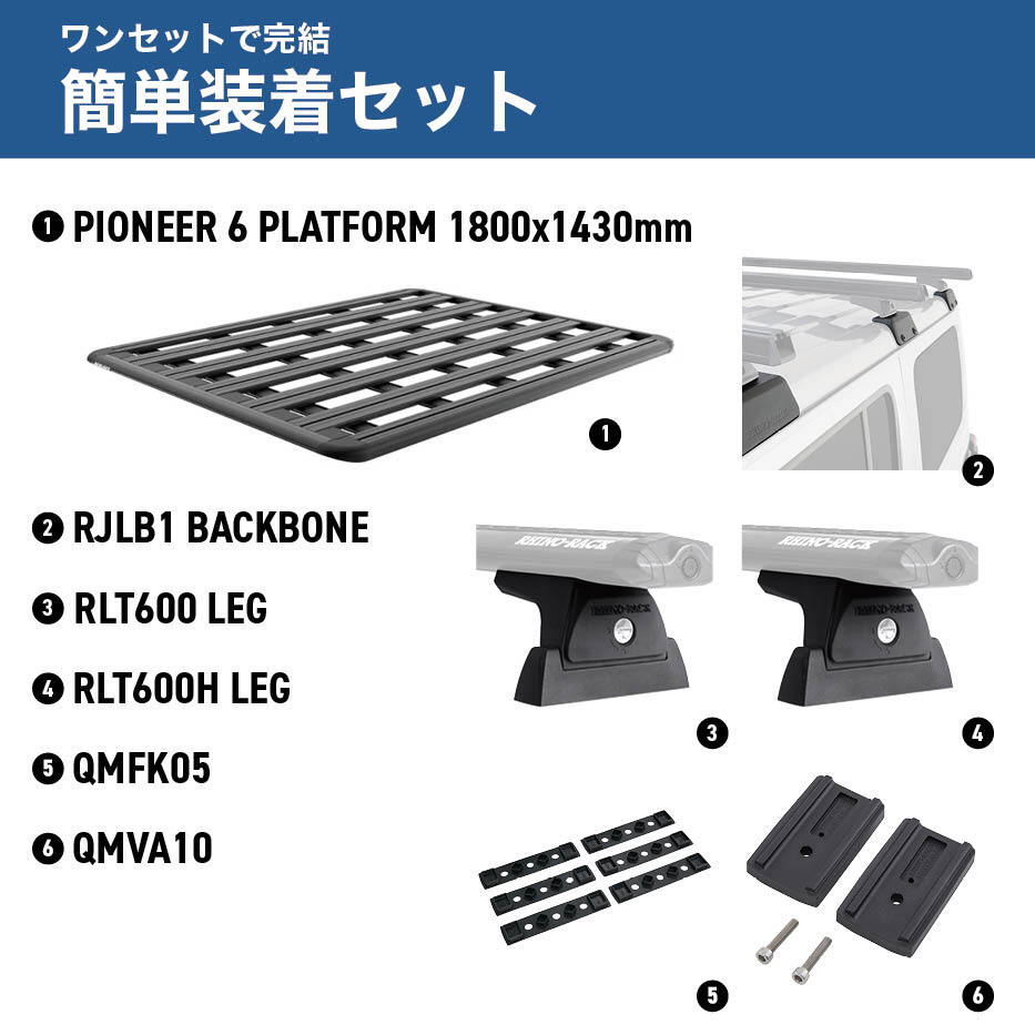 | 詳細 | ・Pioneer 6 Platform (1800mm x 1430mm) 62108:1pc ・Backbone Mounting System RJLB1:1pc ・Quick Mount Leg (x4) RLT600:1pc ・Quick Mount Leg (x2) RLT600H:1pc ・Quick Mount Vortex Spacer 10mm QMVA10 (2pcs):2pcs ・Quick Mount Fit Kit (RLT600 Rubber Base x6) QMFK05:1pc |