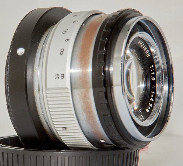 レンズは4郡6枚の「FUJINON 1:1.9 f=4.5cm FUJI PHOTO FILM CO.」(5枚絞り羽1.9-22)です。