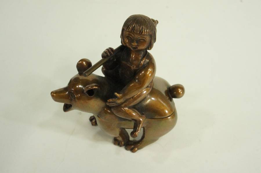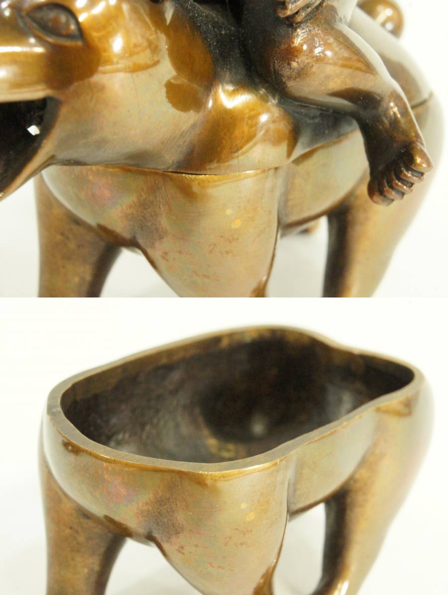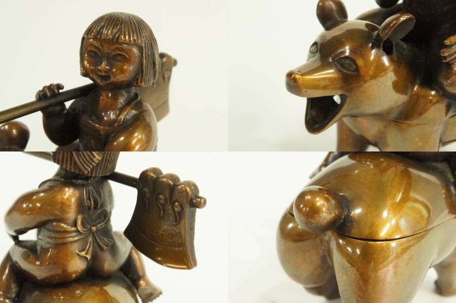 ●高岡銅器 下尾治彦 創美譚シリーズ 金太郎香爐 蝋型鋳銅 共箱 紙箱 共布 未使用に近い 茶道具