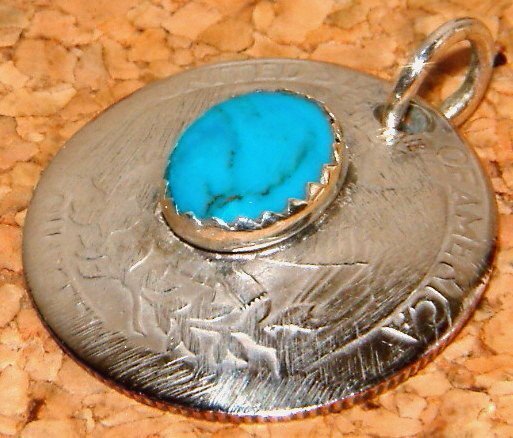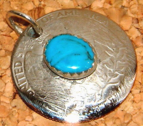 タイプは≪高級 キングマン ターコイズ付き アメリカ銀貨 25¢シルバーコイン ペンダント≫です!