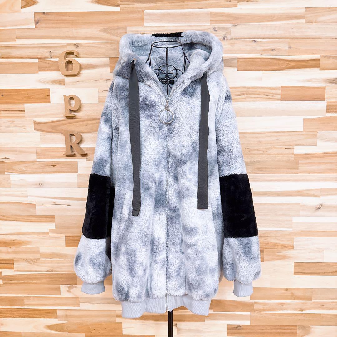 グレーをベースにしたフェイクファーがふんわりと包み込み、ボリュームたっぷりのオーバーサイズがリラックスした雰囲気を演出。リングジップや袖の切り替えデザイン、さらに背面に大胆にあしらわれたTRVSロゴが視線を集め、カジュアルながらも存在感を放つTRAVAS TOKYOのブルゾンです。※LGスタイラーにて除菌リフレッシュ・スチームクリーニング済みです。