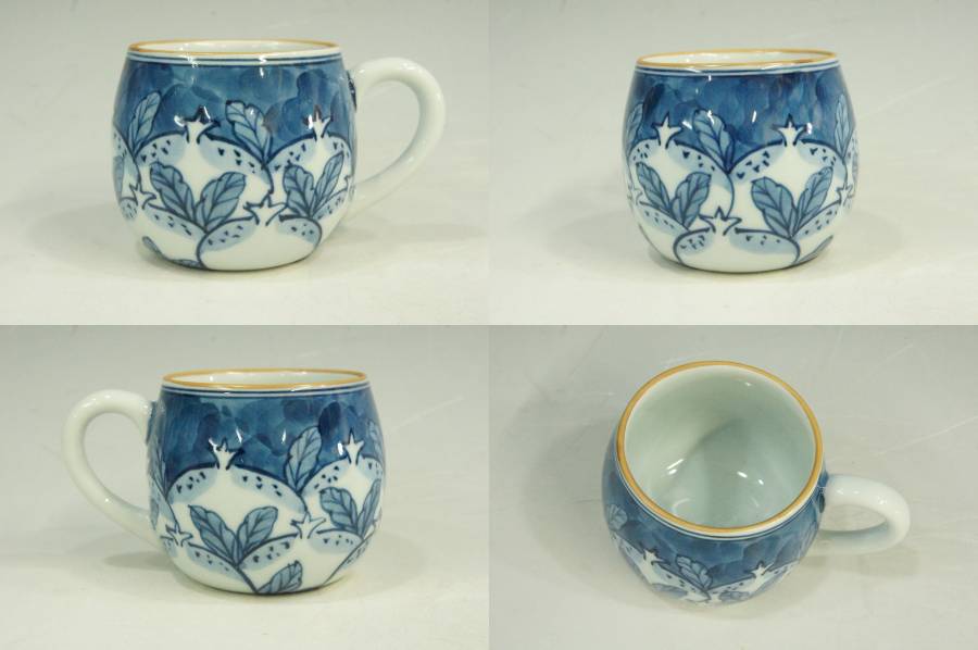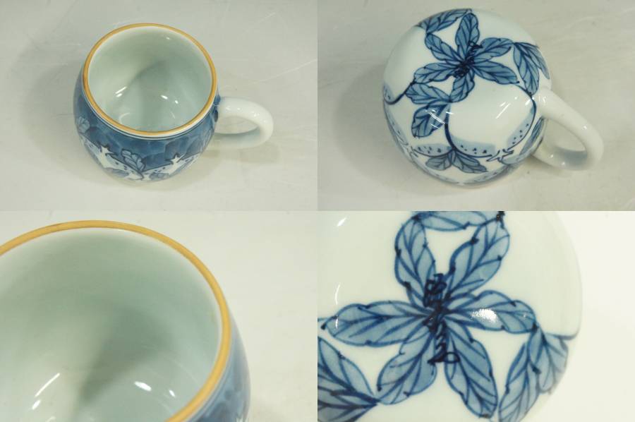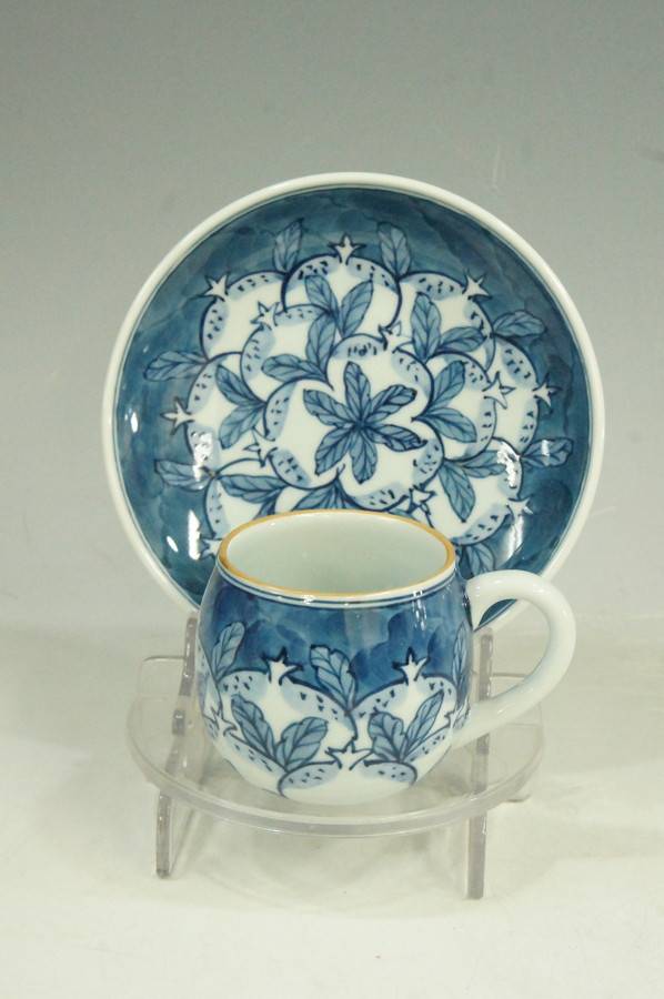 ●有田焼 源右衛門窯 染付柘榴絵 碗皿 六客組 コーヒーカップ&ソーサー