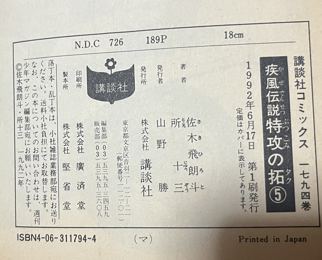 ●商品名:特攻の拓 5冊(1巻~5巻)佐木飛朗斗/所十三