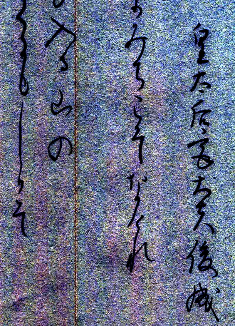 入手したものであることがわかりました。日本の和紙は(す)く製法であるため和紙の繊維が断層画像写真によって一本一本が立体的に見えます。オランダ渡来の髪と性質が異なるのはこのためです。は茶会用の掛軸から外され海外展示のために再表装をしております。掛軸や屏風にすることが可能なように、「Removable Paste(再剥離用糊)」を使用しているため、自筆の書に影響をあたえずに、容易に「剥離」することができるような特殊な表装となっております。