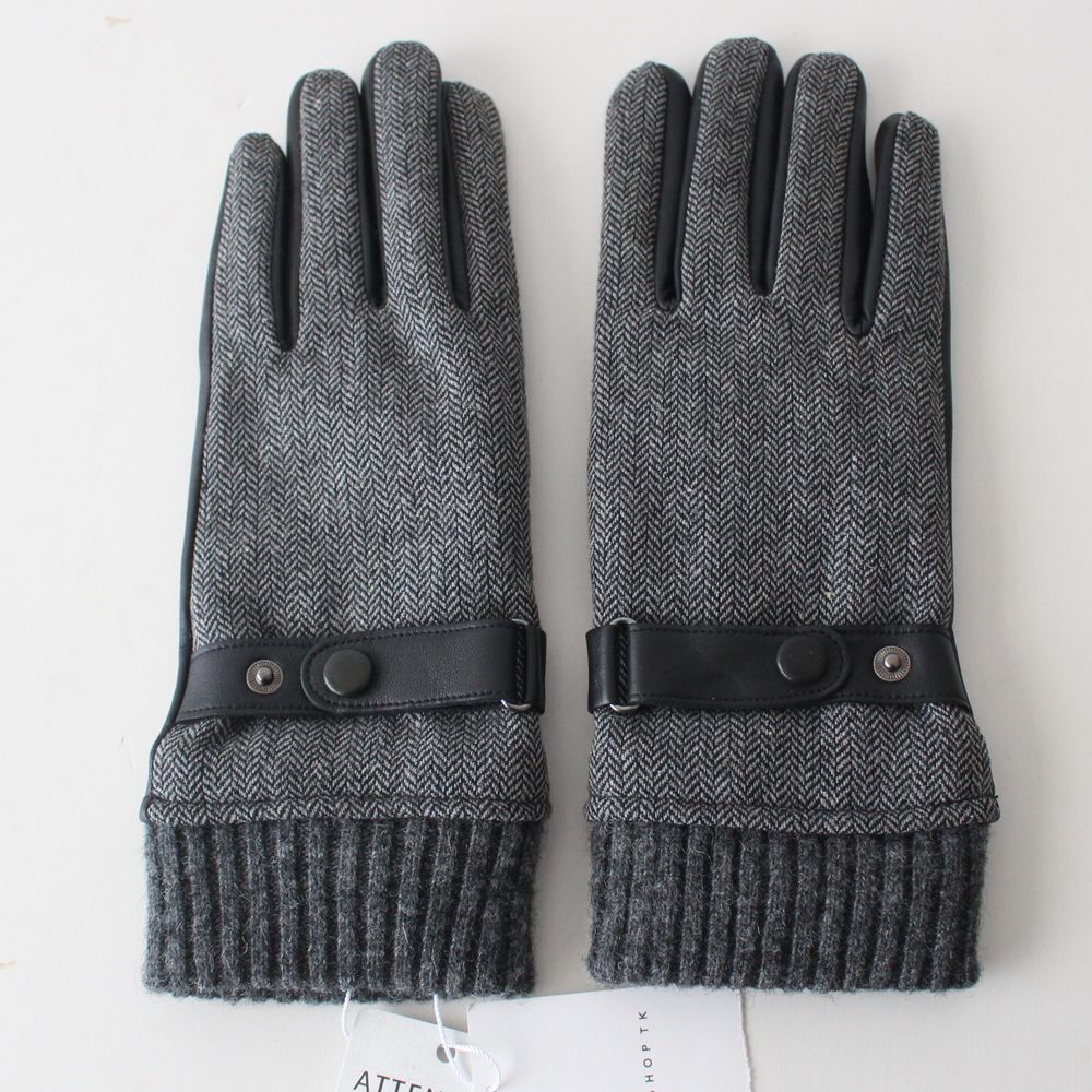 <素材> 甲部:ポリエステル60%、アクリル22%、レーヨン7%、ナイロン3%、毛3%、ポリウレタン1% 掌部:羊革 リブ部分:毛79、ナイロン21% 裏地:ポリエステル100% |