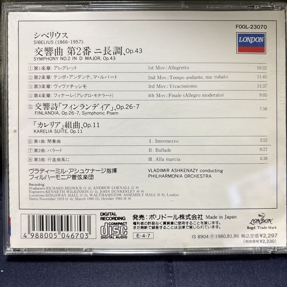 ウラディーミル・アシュケナージ指揮フィルハーモニア管弦楽団の演奏によるシベリウスの交響曲第2番、交響詩「フィンランディア」、「カレリア」組曲。アシュケナージならではの心に響く演奏で録音も優秀です。送料無料です。