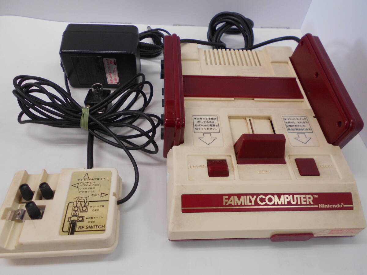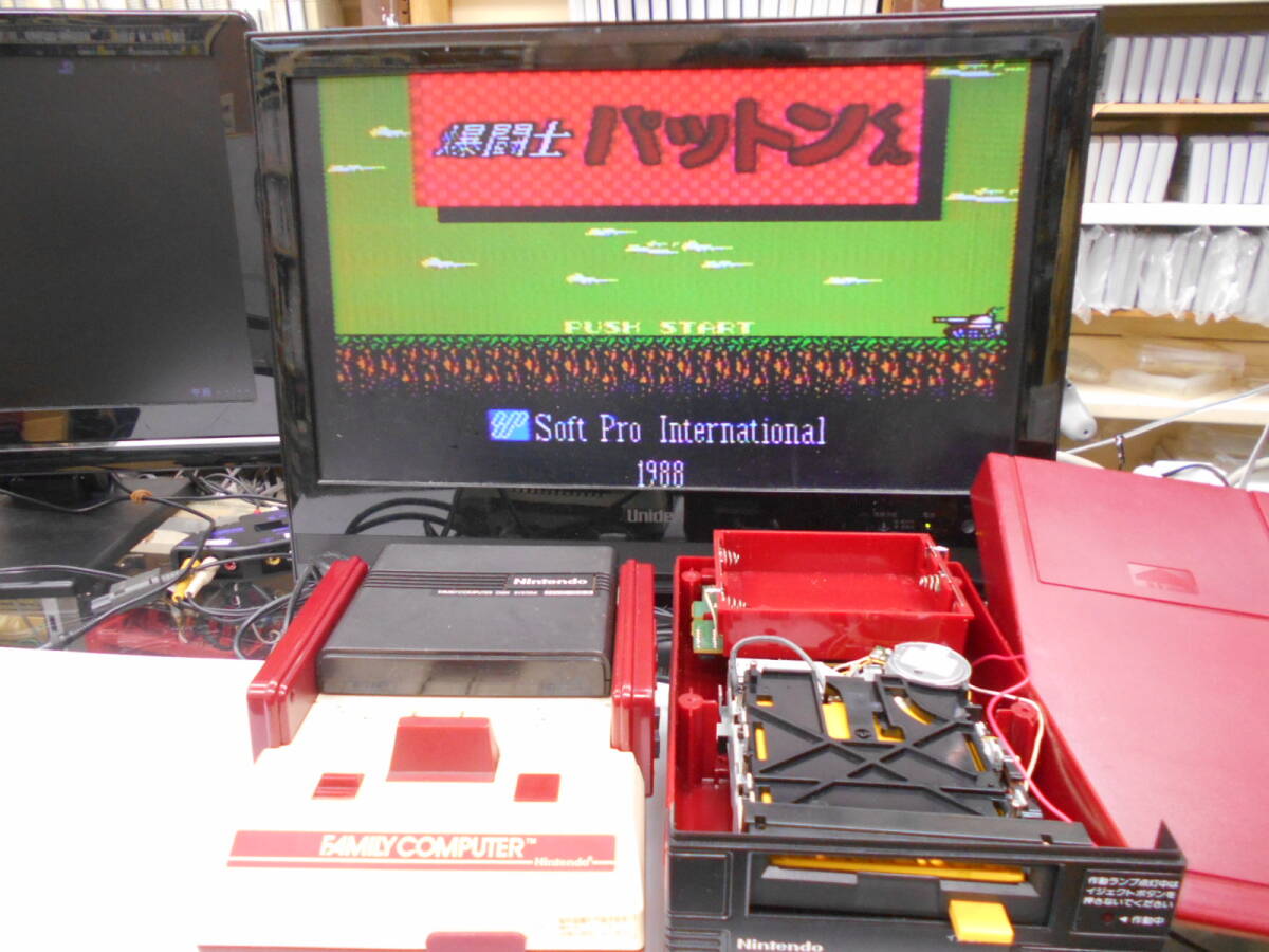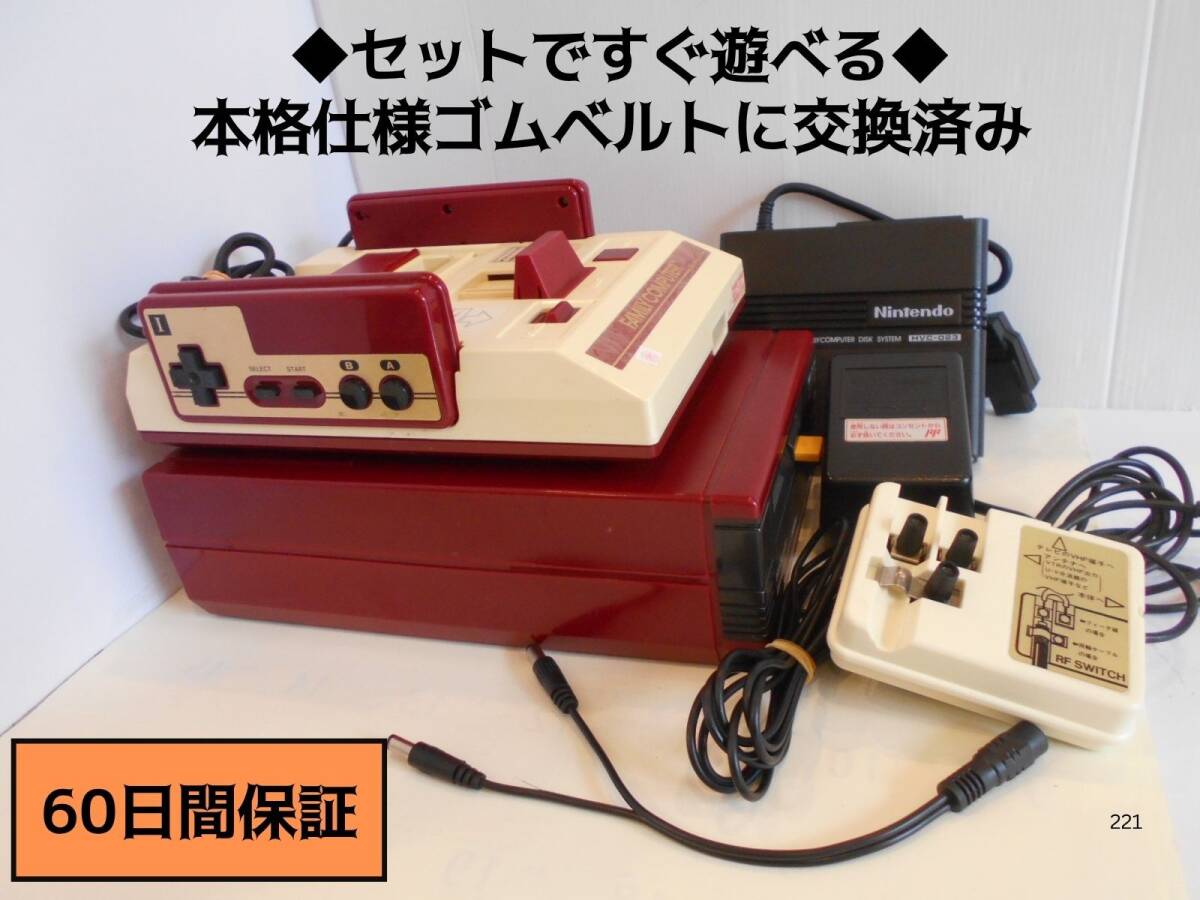 【ディスクシステム本体】 ★本体、RAMアダプタ、電源接続ケーブル(コンパクトで使いやすい二股ケーブル)のセット。【ベルト交換済み】。 ★ベルトは本物仕様の新品を装填。耐久性・信頼性があり安心です。(安価なモビロン輪ゴムでも一時的な代用は可能ですがすぐ伸びて空転を起こすのでいずれ交換が必要になります。) ★メンテナンスは、清掃、ヘッド調整、必要カ所のグリス塗布など。 【ファミコン本体】 ★本体、ACアダプター、RFスイッチのセット。 ★本体:多少の経年感(黄ばみ)やスリキズがあります。 ★コントローラー:ボタン機能良好。多少のスリキズや経年感(小傷や金メッキの塗装劣化など)があります。 ★RFには同軸端子を取付済み、テレビへの接続簡単。ACアダプターは純正。 ★現在の液晶テレビでの使用説明書あり(発売当時の取説は役に立たないので当店が作成)。 【安心の60日間保証】お買上げ日から30日間は修理代、送料とも無料です。以後30日間は修理代無料、送料はご負担下さい。 ※画像は見本です。 【注】 電源2股ケーブルをファミコン用ACアダプターに接続すると、ファミコン本体とディスシステム本体の両方を稼働させることができるので、ディスクシステム本体専用のACアダプターを必要としません。 | |||