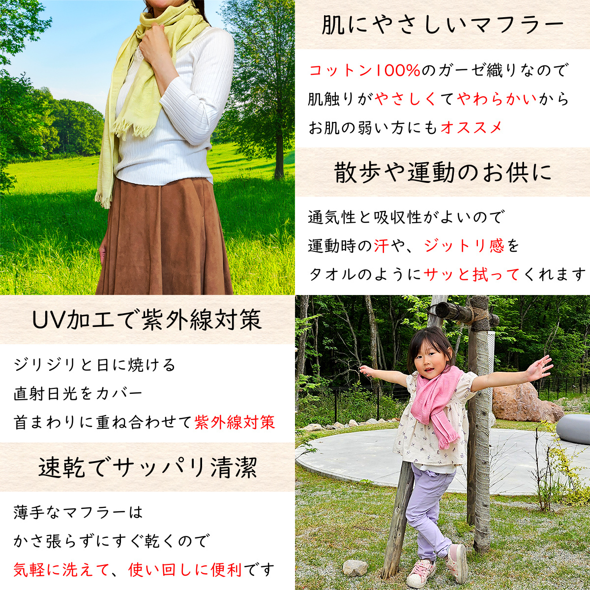 | 商品 | UVカット加工 コットンマフラー |