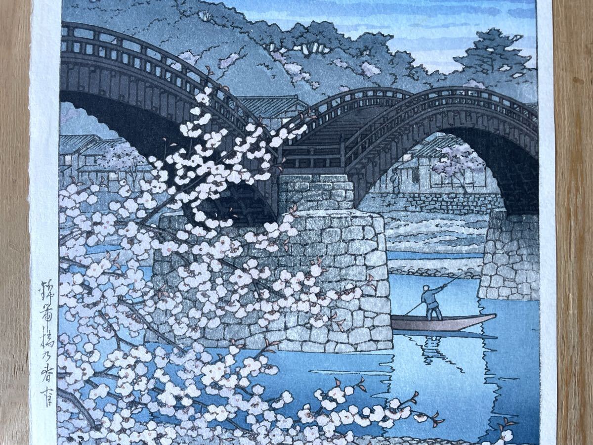 日本全国をくまなく歩いた巴水は錦帯橋にもたびたび足を運んでいます。下を流れる清流錦川と桜に埋もれた風情に、