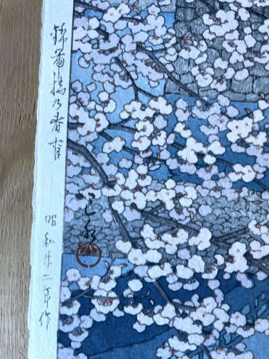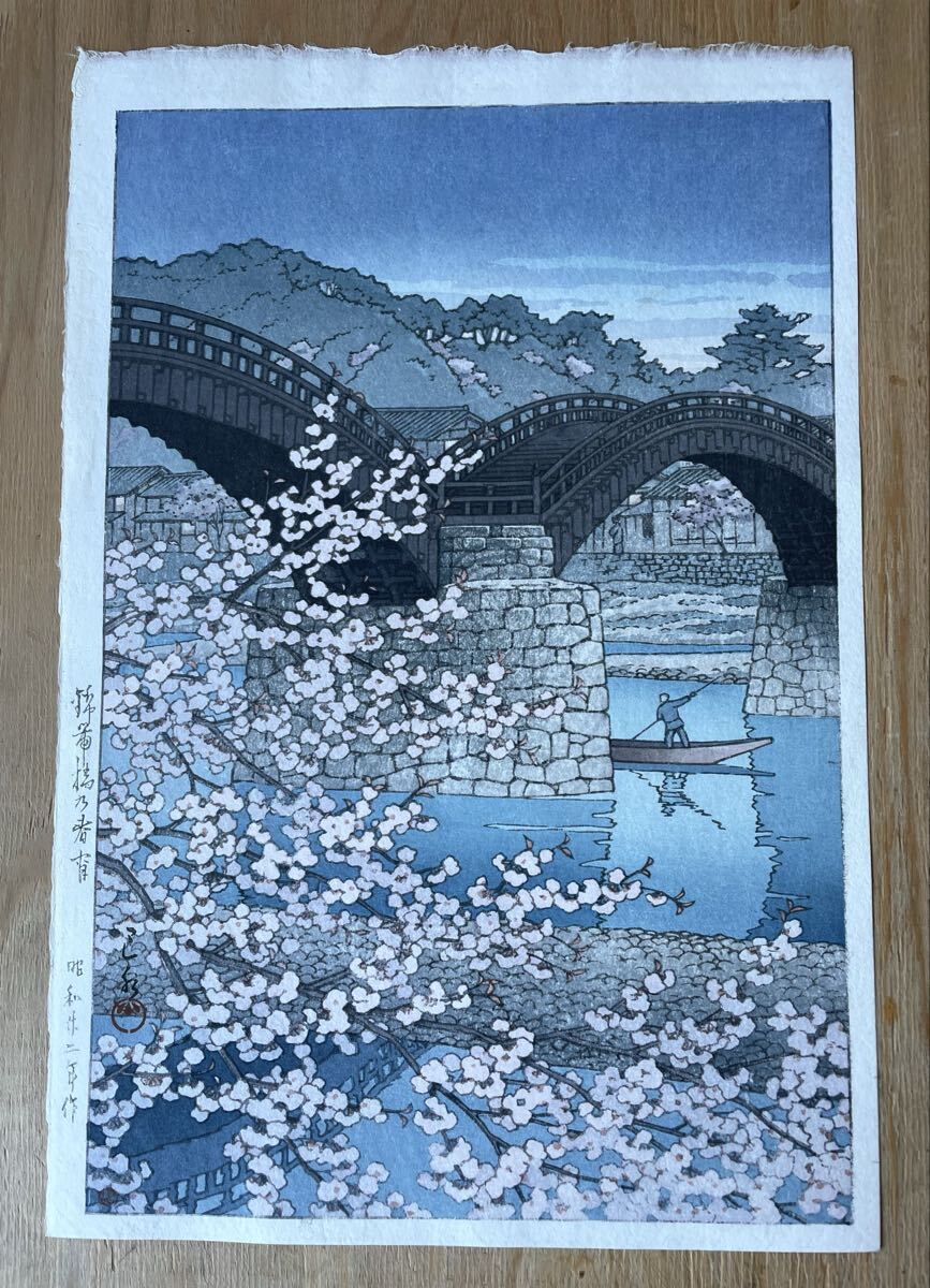 ◆川瀬巴水〈錦帯橋の春宵〉昭和22年(1947)作 初摺り木版画・渡邊庄三郎(真作)