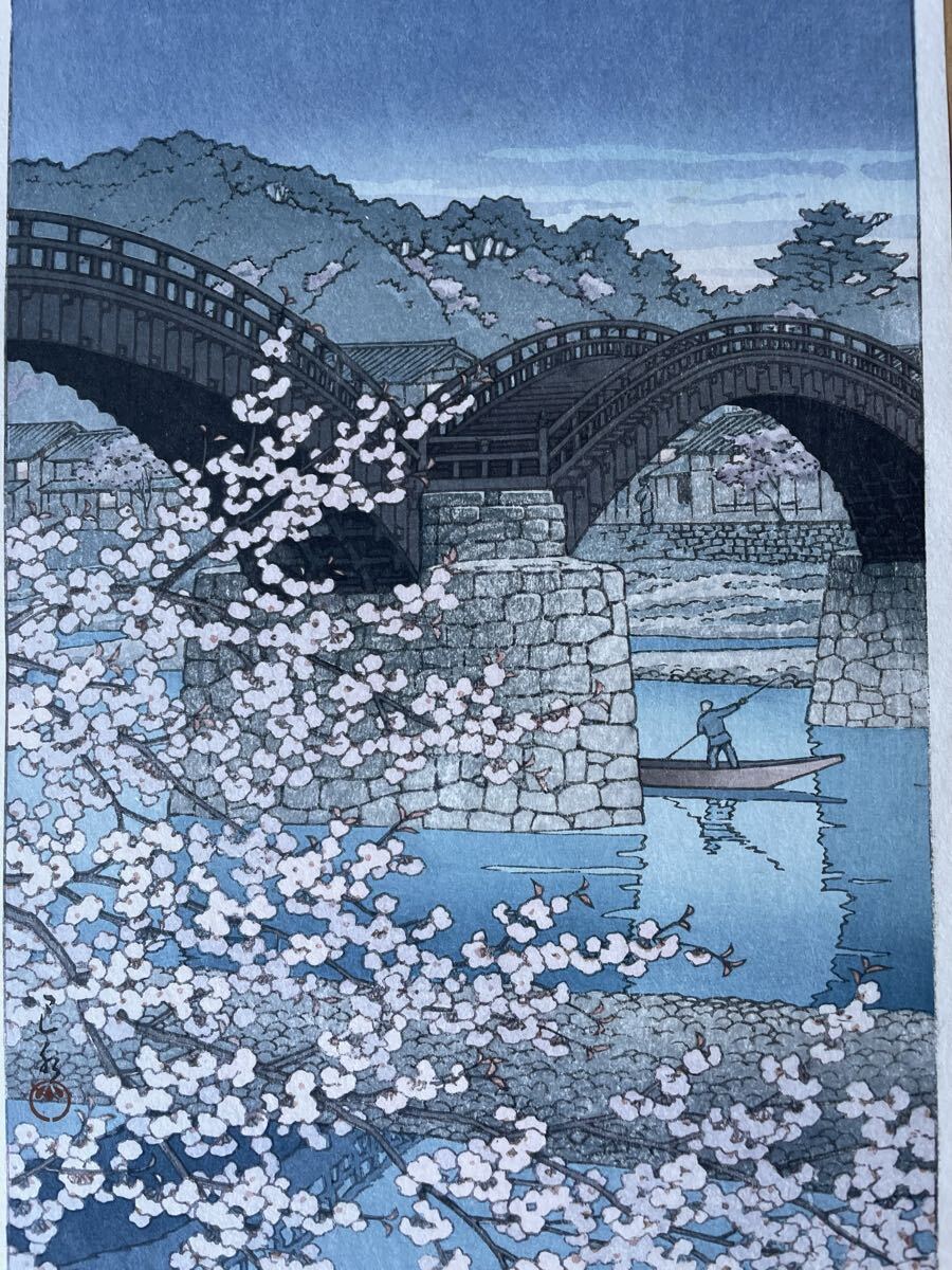 ◇錦帯橋の春宵は巴水の春景色の中でも傑作です。