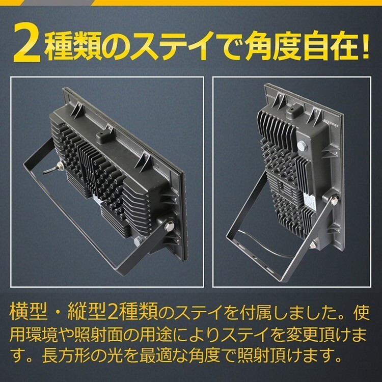 | ★オススメポイント★ 放熱性・防水性能に優れた高輝度・省エネの100w LED投光器です。 これ一台で闇夜も真昼の明るさに!細かな作業も可能な強烈な明るさをご提供致します。 看板や屋内・屋外イベント・店舗の常設用として最適! 【高輝度の14000LM!新商品の省エネLED投光器】 200個の超高輝度SMD 5730を均一に並べたLED基盤。 6000~6500Kの色温度。 約120度の広範囲を照射。 約14000ルーメンの圧倒的な明るさを実現し、同等品より30%明るさアップ!! 【2種類のステーで最適な照射角度を実現!】 縦・横両方に設置可能な2種のステーを付属しました。 照射面を水平に変更したり、縦に変更したりと用途に応じてご選択頂けます。 壁掛け・床付け・天井などの取り付けに対応できます。 しかもステーは180度調整可能で様々なシーンにご利用頂けます。 【熱発散が速い 長寿命】 ヒートシンクを採用し安定した温度に保ちます。 従来品より更に優れた放熱性で効果的に寿命を延ばします! 【密封性に優れ、IP66等級の防水性能を】 コーキングを強化することで、IP66相当の防塵・防水性能を実現! IP66防水レベルで、室外や室内の照明と広告看板、掲示板など様々な場所でご利用頂けます。 倉庫・作業場・安全照明としても最適です! 【平均演色評価数Ra80以上!】 高輝度LED素子を搭載し、自然に近い純粋な色味を再現。 優れた演色性によりひときわ明るく、対象物の本来の色味を損ないません。 【優れた堅牢性!耐衝撃、耐振動】 耐衝撃、耐振動、丈夫な設計で安全性・安定性・信頼性抜群 作業場で求められる強靱なボディを備え、高い堅牢性を提供します。 【AC85~265Vの電圧に対応!】 電圧はAC85~265Vの広範囲で利用可能! 電圧の心配なくあらゆる国・場所で快適にご利用いただけます。 【新設計の薄型ボディで従来品より更に設置場所が広がります!】 海苔漁・シラス漁での常夜灯。夜釣りの照明。集魚灯などさまざまな場面で活躍! 看板灯、駐車場灯、インテリア照明・ 樹木や店舗壁面などのライトアップ照明に!看板照明や店内の演出用照明! 公共場所、駐車場、事務所、展示場に使用、作業灯 駐車場灯、看板灯、街灯、公園、ホール、玄関常夜灯、町内防犯灯として使用! 一定の明るさが必要とされる検品作業を行う際の照明や、夜間作業を行う際の照明など様々な場面で活用頂けます。 屋外用照明としてもご利用頂けます |