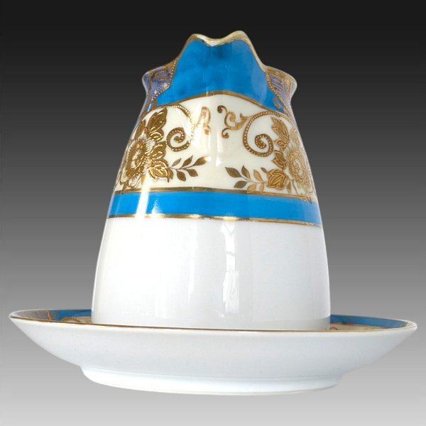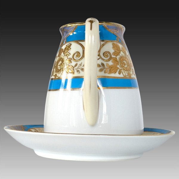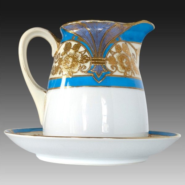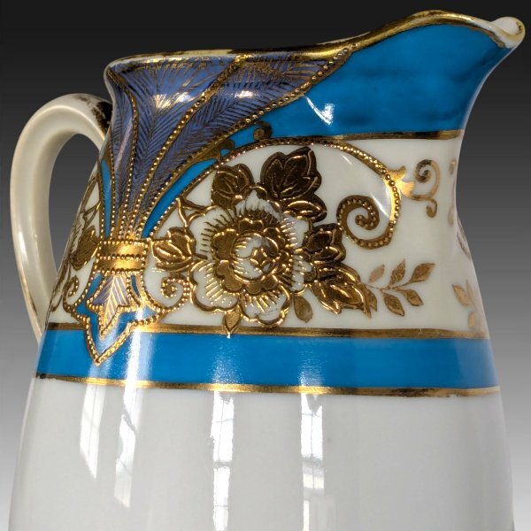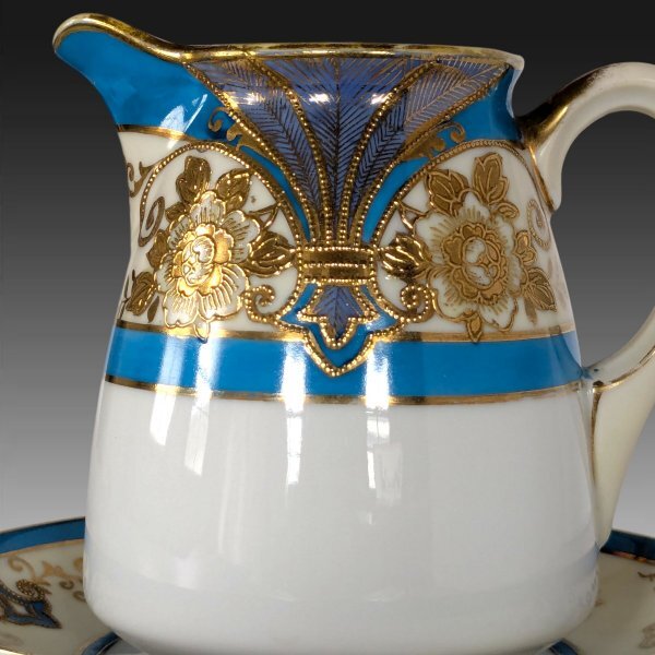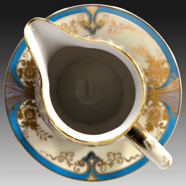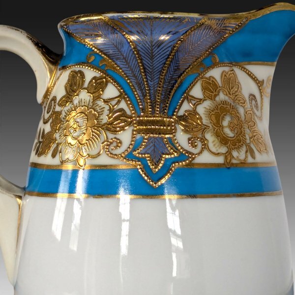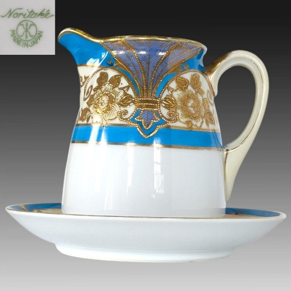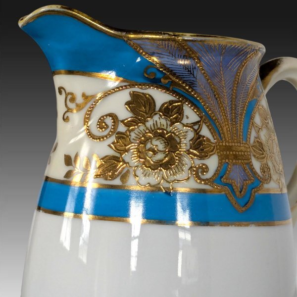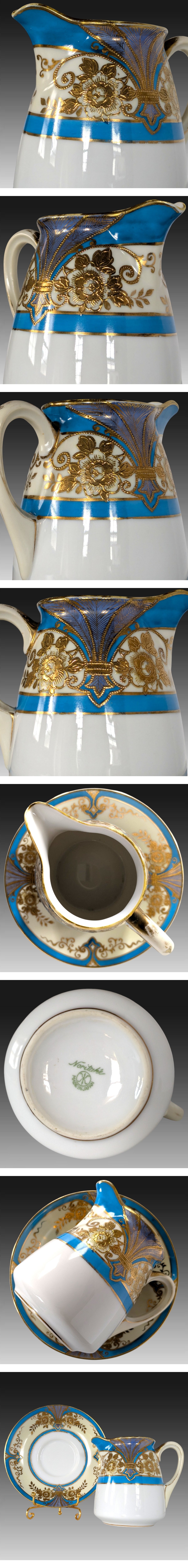 | 【里帰り】オールドノリタケ クリーマー 1911年製 マルキ印 金点盛金彩 アールヌーボー 水色地花絵紋 Noritake 729_1026r |