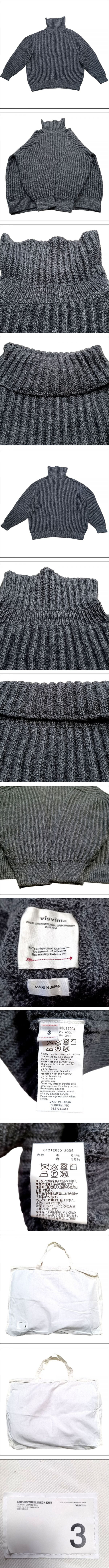 visvim AMPLUS TURTLENECK KNIT タートルネックニット チャコール サイズ3 ウール×リネン 日本製 布袋付き 0121205012004 美品 ☆urubai072 |