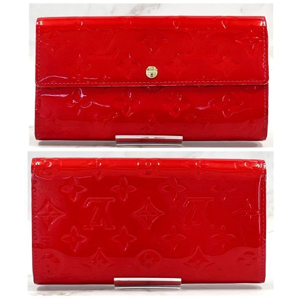 【鑑定済】LOUIS VUITTON ルイヴィトン モノグラム ヴェルニ ポルトフォイユ サラ 長財布 M9352 ポムダムール エナメル加工カーフレザー