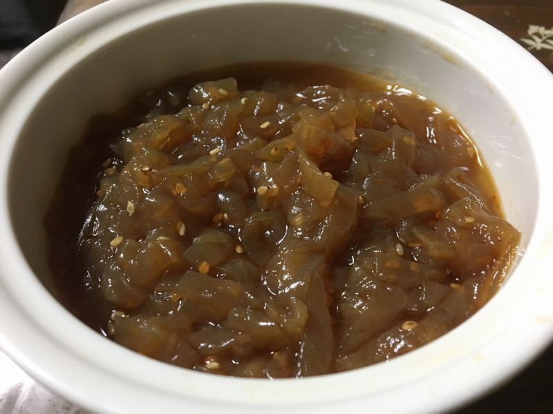 | 特有のコリコリ食感のクラゲをピリ辛の中華風に仕上げました。 |