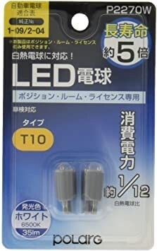 ☆商品詳細☆POLARG日星工業株式会社P2270W LED電球T10ポジション ルーム ライセンス専用未開封の出品です。部屋を掃除したら出てきました使わないので使っていただける方いませんか?特徴はウェッジT10タイプ12V車用。発光色ホワイト色温度6500K全光束35lm。ポジションやルームやライセンス専用。消費電力は通常電球より1/12。長寿命約5倍。車検対応。よろしくお願い致します。