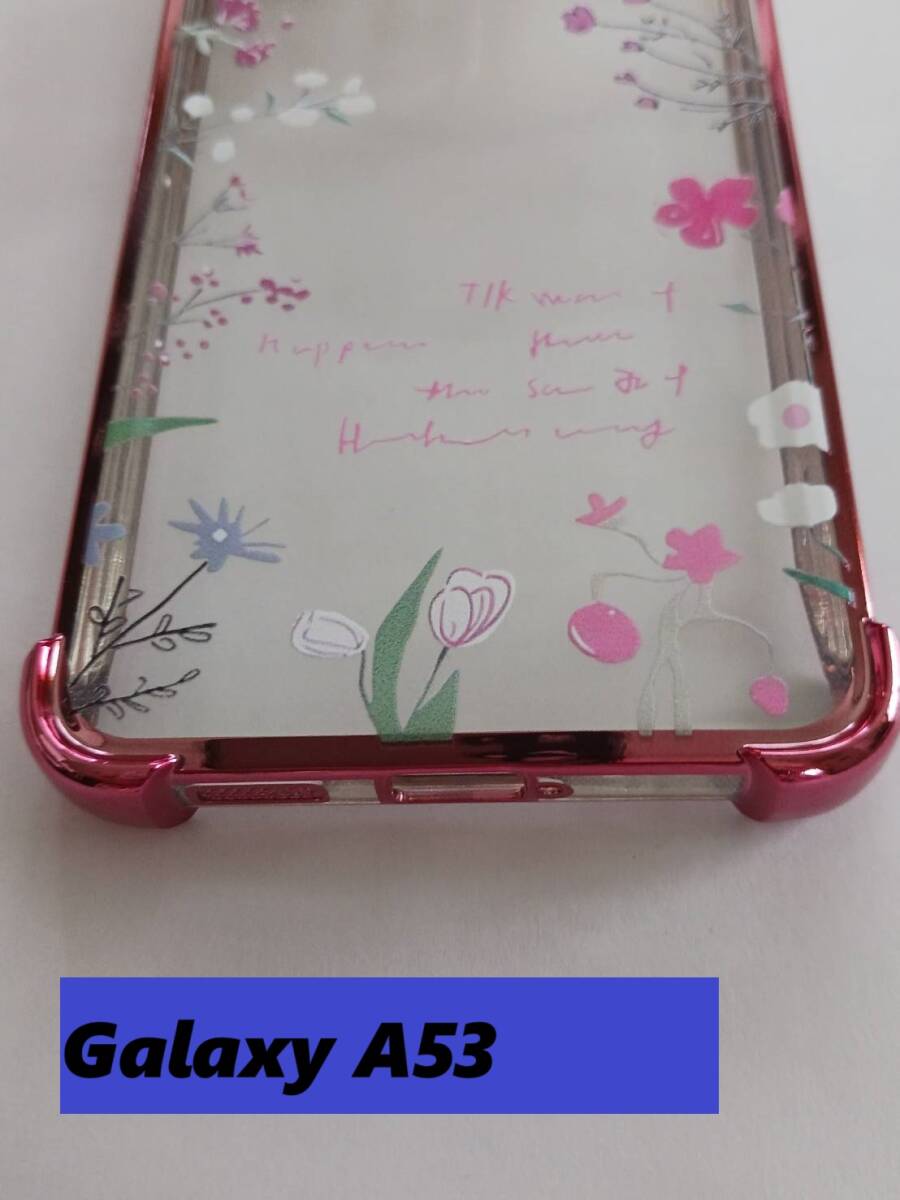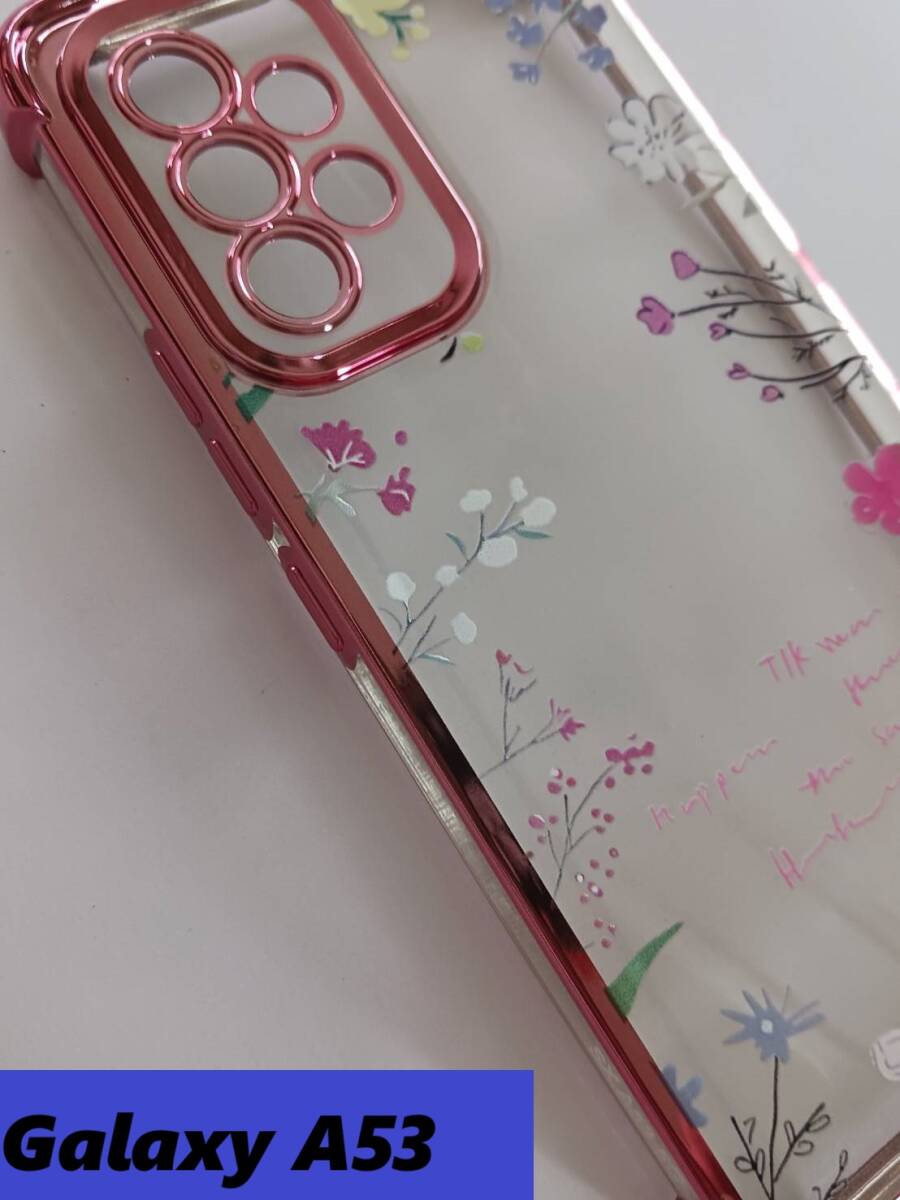 Galaxy A53 ピンクフラワー柄 メッキ加工風 Galaxyケース