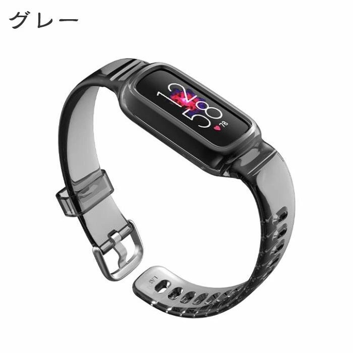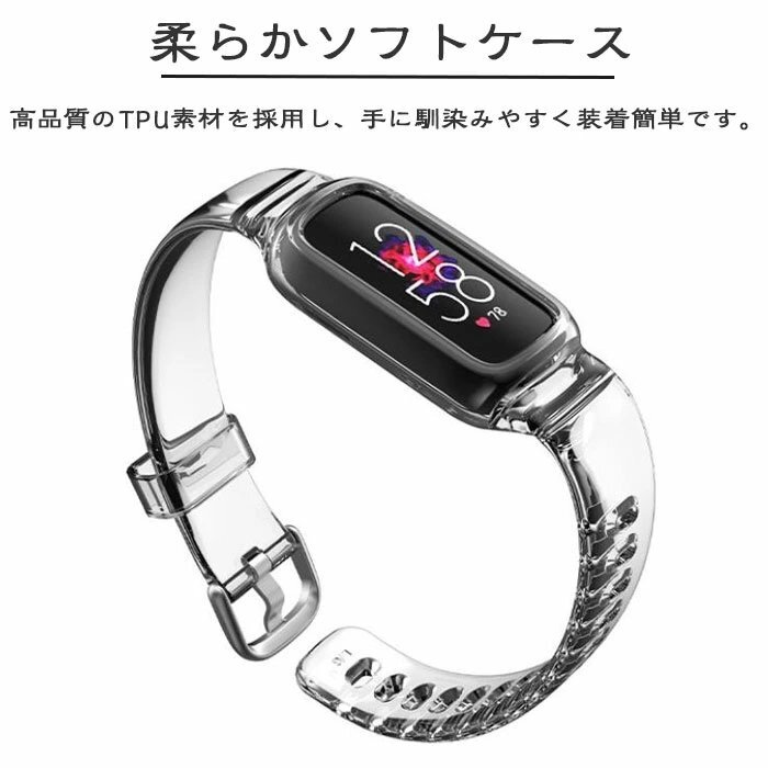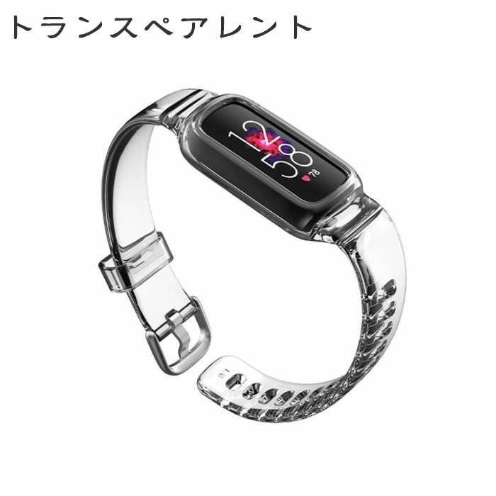 Fitbit Luxe 対応トラッカー バンド 交換用 半透明 保護ケース 着替えストラップ 透明スマートウォッチ バンド 一体式☆ レッド
