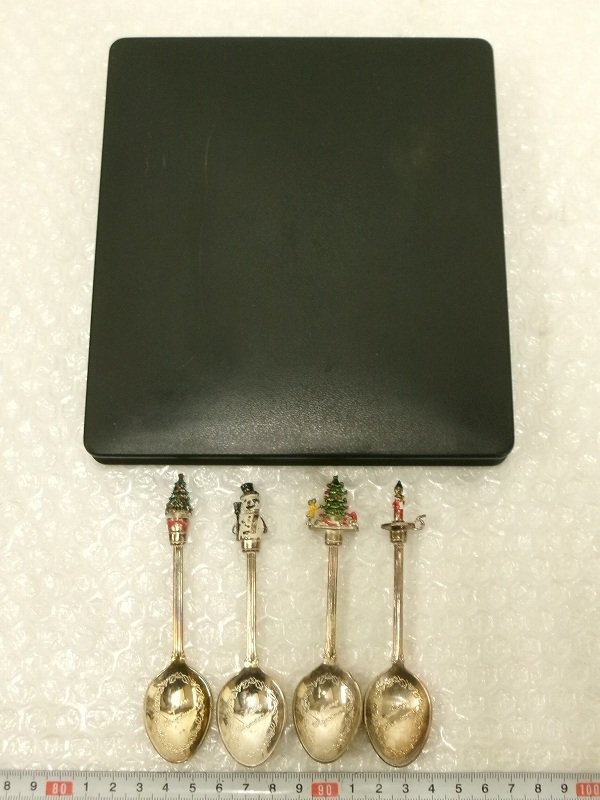 P6520 英国製 シルバープレート クリスマス スプーン 4本 69g 共箱 |