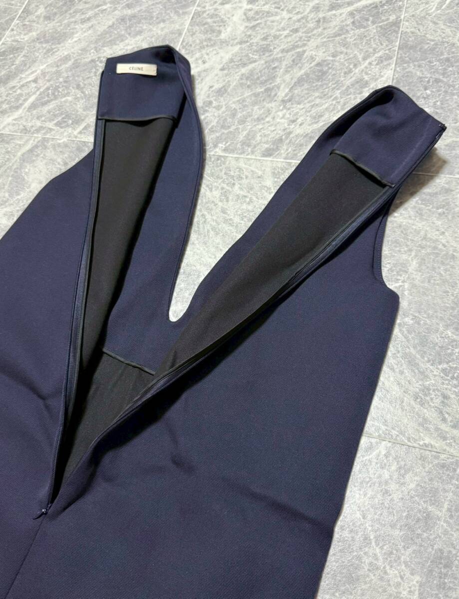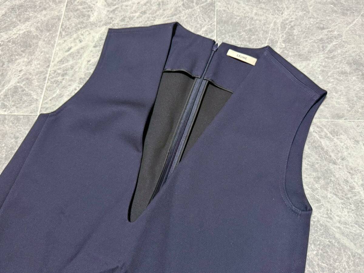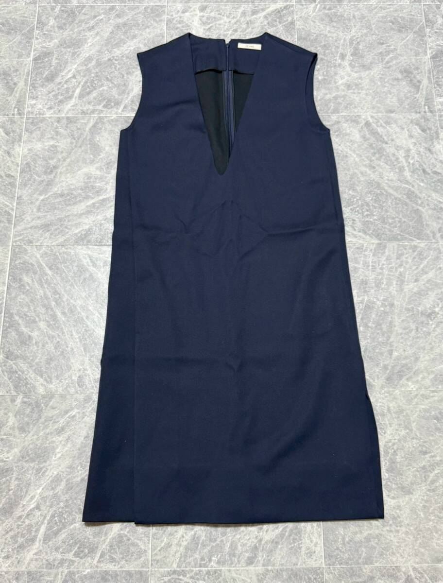 商品名: CELINE by Phoebe Philo セリーヌ フィービーファイロ 100% ウール Vネック ヴァルーズ アシンメトリー ワンピース サイズ38 紺 ネイビー