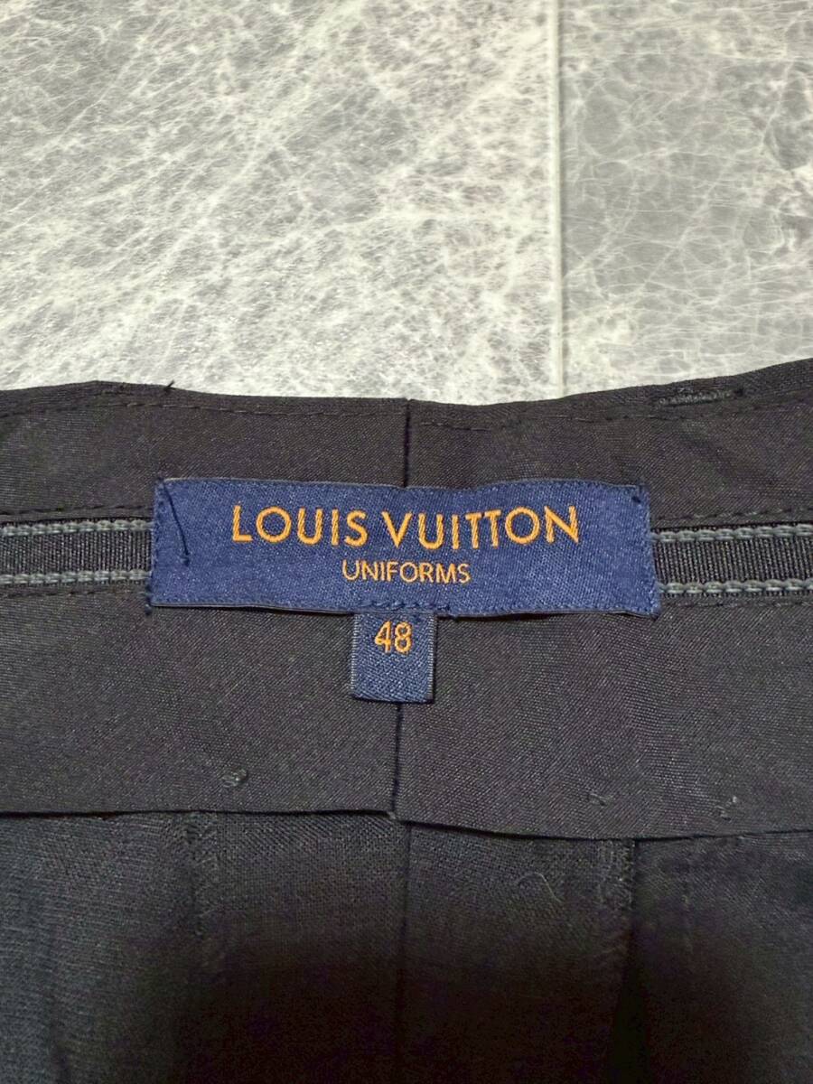 商品名: LOUIS VUITTON UNIFORMS by Virgil Abloh ルイヴィトン ユニフォーム ヴァージルアブロー ウール 2タック ワイド スラックス パンツ サイズ48 黒 ブラック