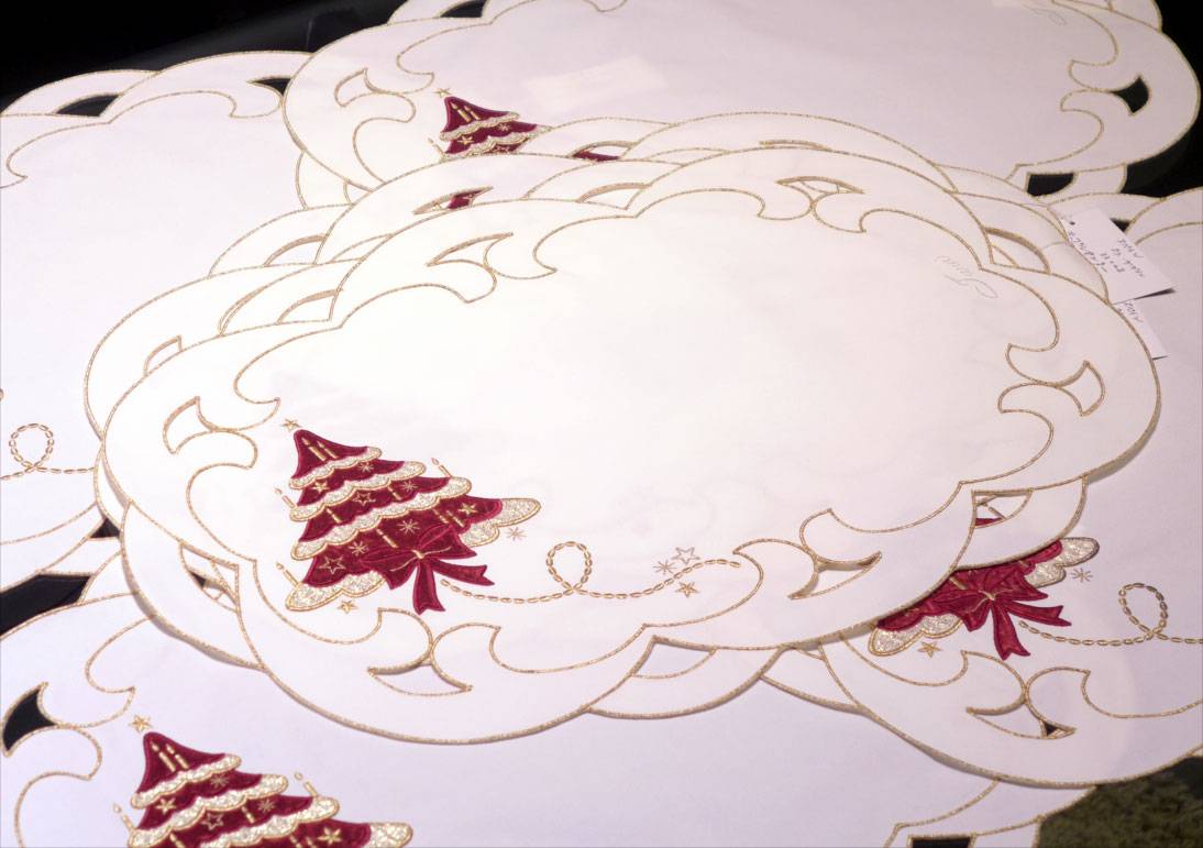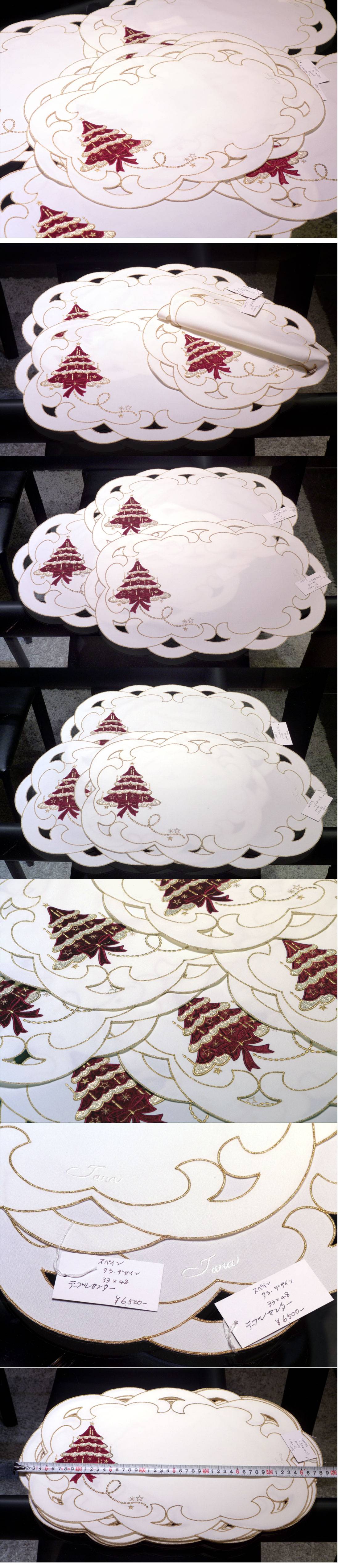 f未使用 スペイン製 Tara タラ デザイン クリスマスツリー柄 テーブルセンター 6点まとめて。お色味はベースは真っ白、主観ですがテーブルナプキンの白さです。大きさは画像参照でお願いいたします。未使用ですが、経年保存品の為、画像をよく見て頂き、状態に了承いただいた方のみの御入札をお願い致します。 【注意:折りたたんでの発送になります】★当オークションにて他にも敷物類を出品しております。是非ご覧下さい。★