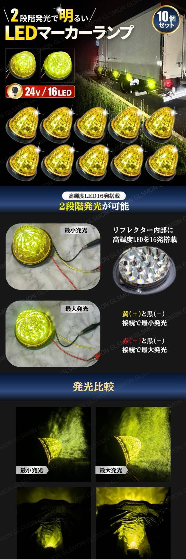 | 24V マーカーランプ ダブル発光 イエロー 10個セット 点灯確認済 |