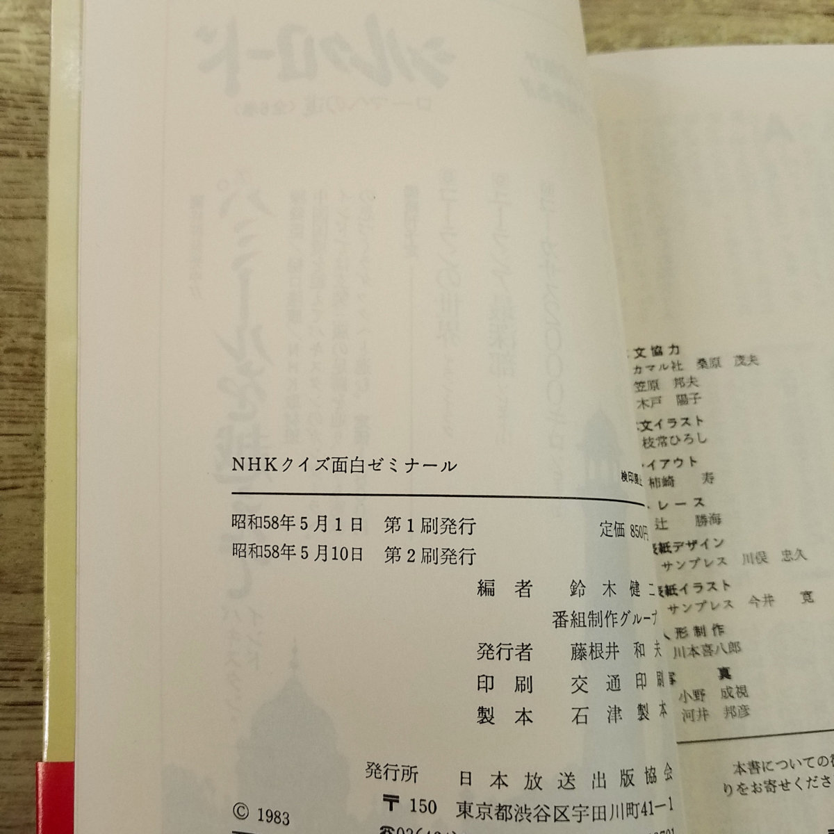 【NHKクイズ面白ゼミナール】 著者:鈴木健二、番組制作グループ 出版社:日本放送出版協会 発行年:1983年5月10日 第2刷 商品の状態:並。多少の使用感あり(経年変化含む) (焼け少々 / 折れ少々 / 汚れ少々 / ヨレ少々) 付属品: 備考: 経年による変色やシミ、汚れなどが多少あります。 1981~1988年までNHKで放送され、最高視聴率40%を超えるという今ではとてもありえないぐらいの人気クイズ番組「クイズ面白ゼミナール」に出題されたクイズをまとめた一冊。 かなり数の問題を収録。懐かしさもありますし、雑学にもなります。 #クイズ #クイズ面白ゼミナール #鈴木健二 #クイズ番組 #NHK #テレビ番組 #昭和レトロ #昭和・テレビ 当商品は中古品です。 状態については、写真もよく参考にしてください。 商品の状態についてできる限り確認・記載しておりますが、見落としがあった場合はなにとぞご容赦ください。 |