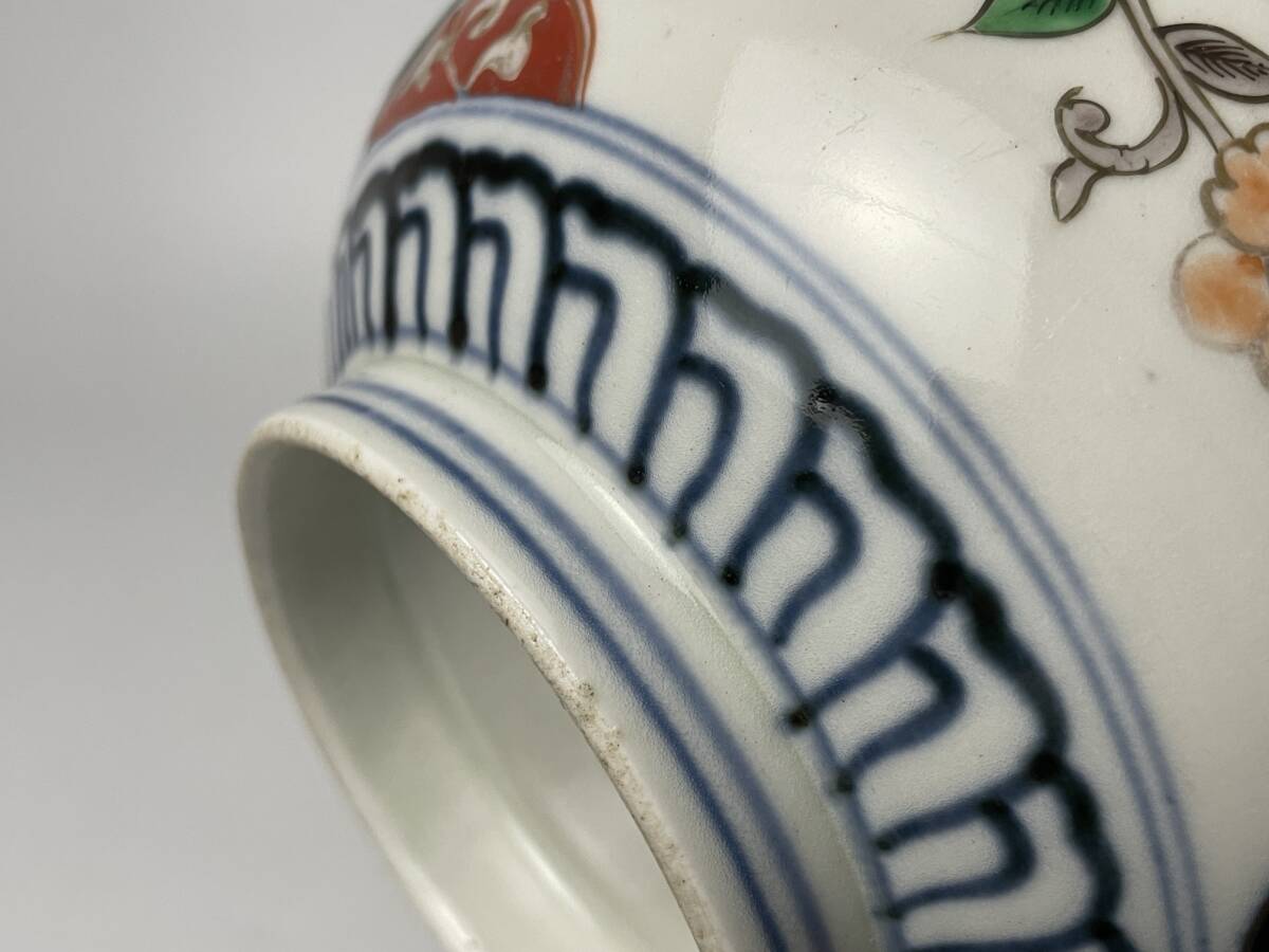 | 古伊万里 色絵花唐草文蓋付碗 二客 角笑 時代 金彩赤絵丼ぶり茶碗 検)明治期元禄江戸期 |