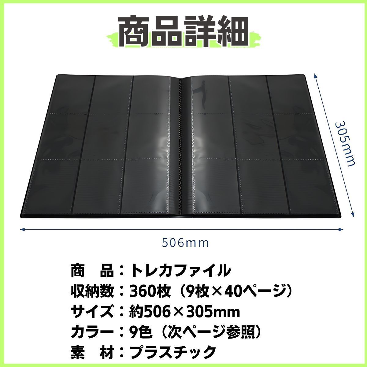 商品名トレカ ファイル カードファイル ブラック ポケモンカード 収納 ポケカ 遊戯王 ワンピース MTG トレーディングカード ホルダー スリーブ 大容量 box 固定バンド付 9ポケット 360枚 人気 おすすめ ランキング 送料無料ブラック