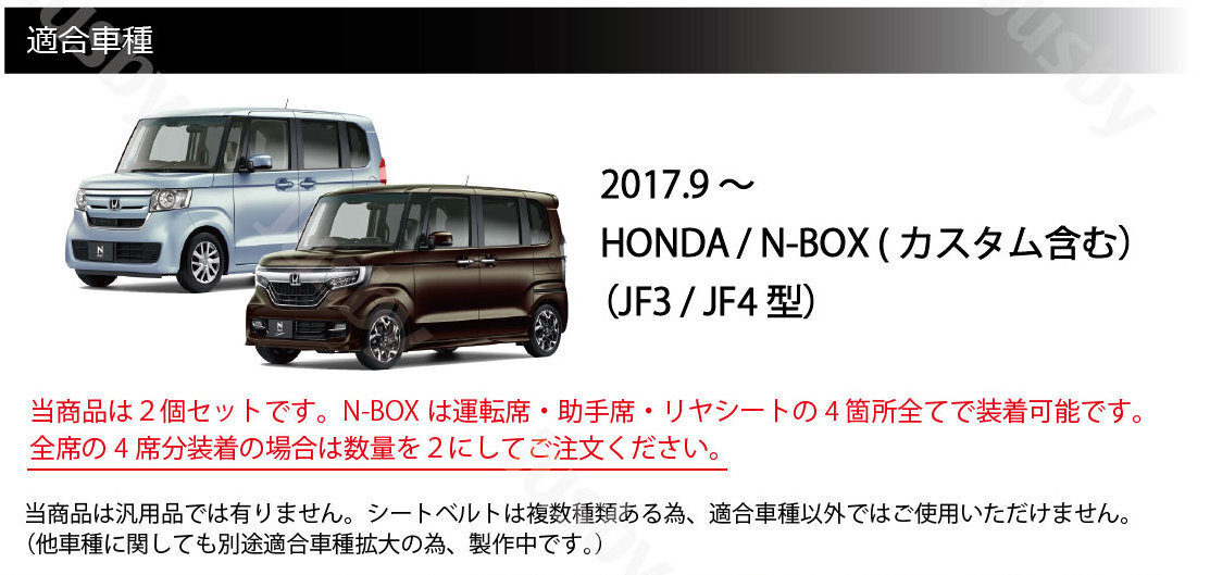 | ホンダ N-BOX (JF3/4)専用 本皮シートベルトカバー2個セットです。 本皮シートベルトカバー2個セットです 車種専用本革シートベルトカバー 2個セットです。ホンダ N-BOX(カスタム含) (JF3/4) に装着可能です。 ステアリングやシフトノブと同様に乗車毎に必ず触れるシートベルトを本革にてカバーできます。 手触り・質感アップは勿論シートベルト収納時 のパネルへの傷つけ防止・カタカタ音防止にもなる為非常にオススメです。 当商品は2個セットです。 赤ステッチ・青ステッチ・黒ステッチの3種類よりお選びいただけます。(落札後のカラー変更は出来ません。タイトルのカラーを確認の上ご落札ください) STi & S4 は「運転席&助手席」と「後部座席(真ん中除く)」両方に装着可能です。全席に装着希望の場合は数量を2として注文をお願いいたします。 当シートベルトは汎用品では有りません。 シートベルトサイズは数多く種類ある為適合車種以外ではご使用いただけません。 平縫いとクロスステッチを使用して縫い上げを行い、2種類の糸を使用して強度とデザインにこだわった商品です。 シートベルトの装着・取外し時など触れる毎に本革レザーの上品な質感を感じていただけます。 取付方法は簡単な付属両面テープでの固定または、付属糸で確実な装着&見た目もアップする手縫いによる固定の2種類があります。 お好みの方法で装着してご使用ください。 ( ・∀・)Φスタッフレビュー 通常はプラスチック剥き出しで冷たいシートベルト部分が当商品で一新します。厚みもアップして手触り・見た目の高級感もアップします。 ピラーなどに当たってカタカタ音がなっていたりする事もなくなりました。乗車毎に触れる部分なので装着後の満足度は非常に高くおすすめです♪ |