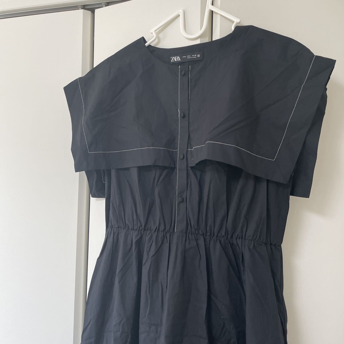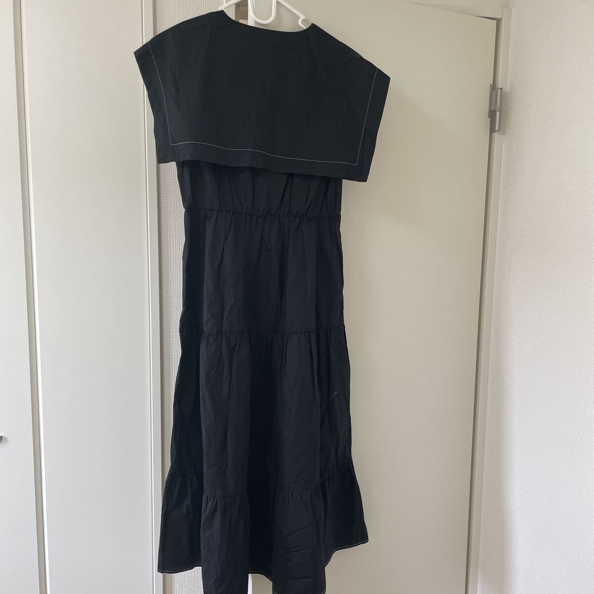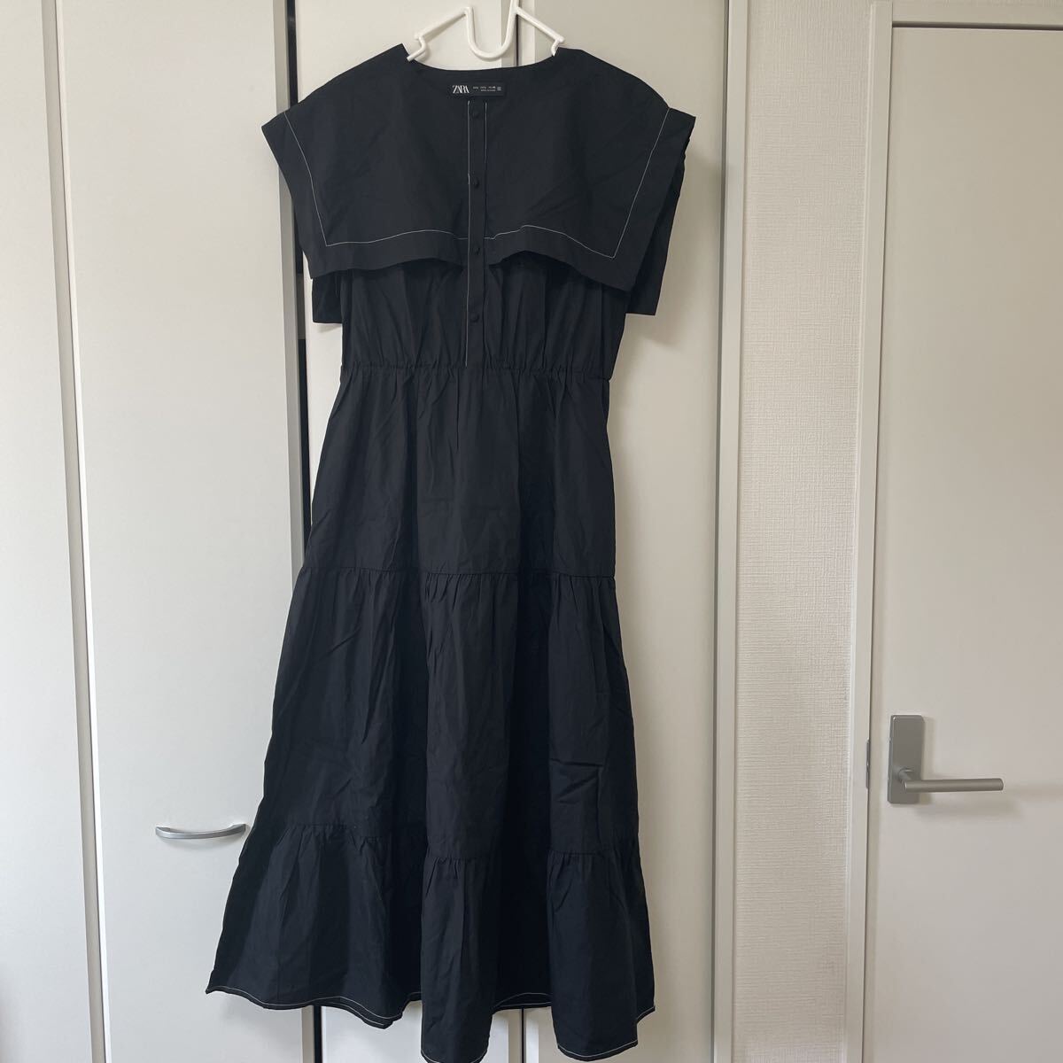 ZARA ティアードロングワンピースセーラーカラー ブラック L