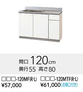 | ◎クリナップ・木キャビ・流し台『新クリンプレティ』特別価格 間口1200mm・即決価格は、写真セット定価57.000円のなんと 48%OFFで32.604円【消費税込】 ◆エコノミーで最適な流し台です。高さ80cm・奥行55cm。 ◆扉の色は、ホワイト・ペールウッドから選択できます。 ◆写真の扉の色は、ペールウッド。シンプルなキッチンに合う、木目調の飽きのこない色です。 ◆ワークトップは、ステンレスです。 ◆シンクの位置を、右側・左側から選択してください。 | |
