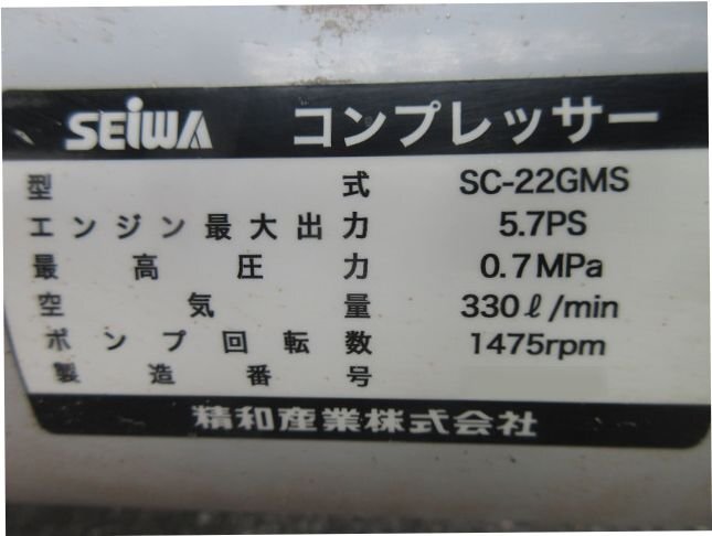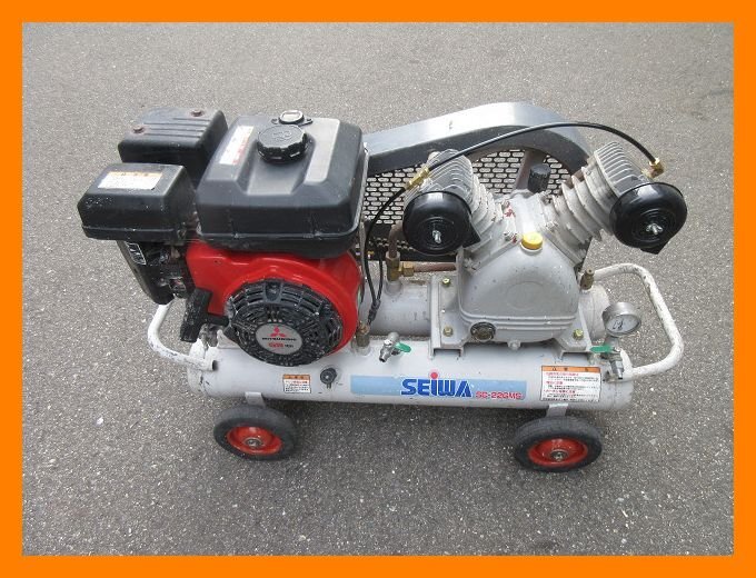 | こちらで動作確認しておりますが、特に問題は感じられませんでした。 seiwa 精和産業 エンジン式 エアコンプレッサー SC-22GMS 写真に写っている物がすべての付属品になります。 | ||