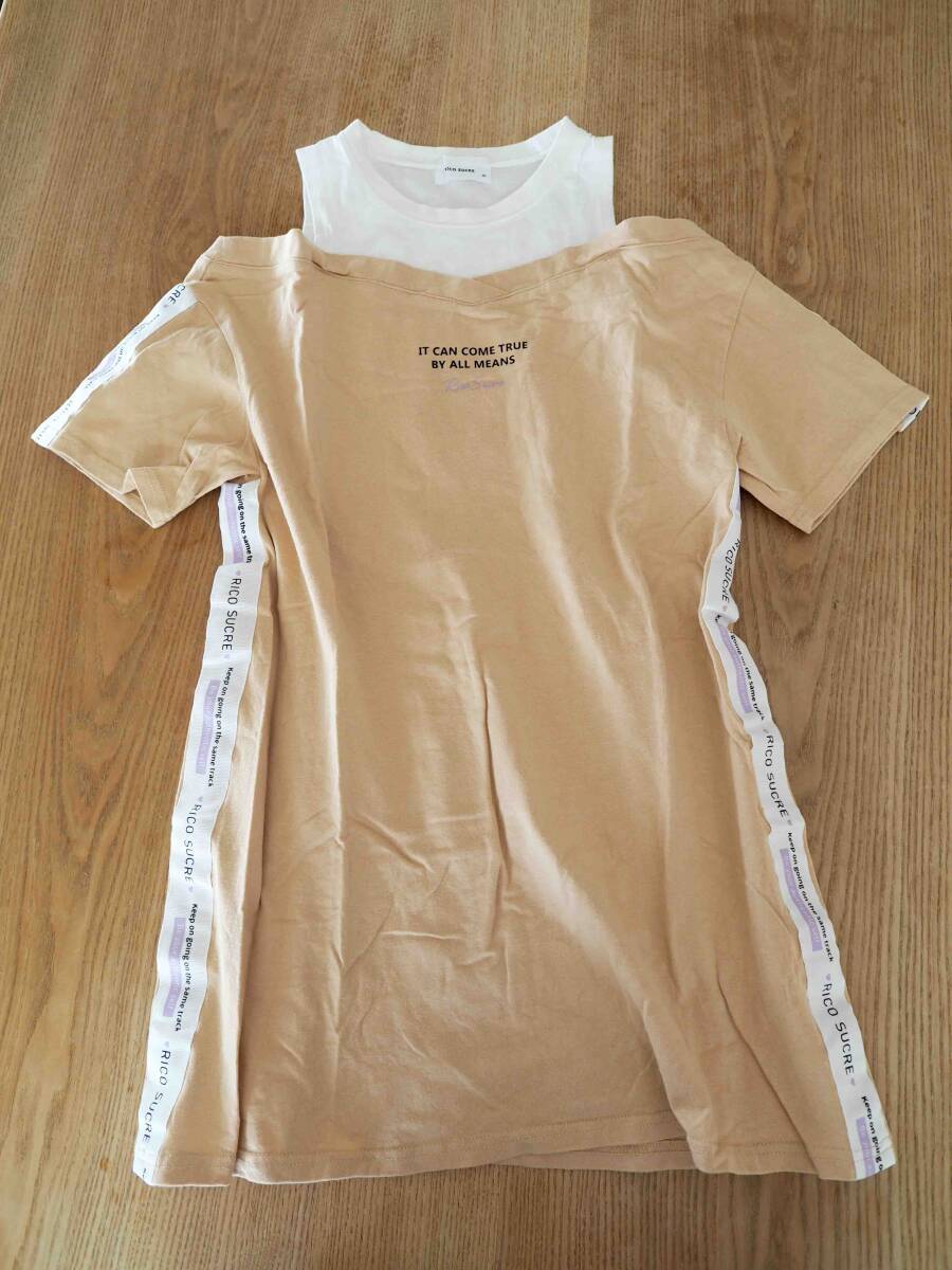 RiCO SUCRE リコシュクレ レイヤード風肩あきワンピース <子供服・キッズ服・ジュニア服> 掲載説明文-------------------- 白のタンクトップとの組み合わせが夏らしい印象を持たせるワンピースです。 サイドのロゴテープデザインにより、スポーティーテイストのスニーカーとも相性が良いです。 状態:USED(数回着用の美品です。状態は写真にて状態ご確認の上、ご購入をお願いいたします。) カラー:ベージュ 素材:(本体) 綿100% (リブ部分) 綿95% ポリウレタン5% 表記サイズ:140 (身長135-145・胸囲64-72・身幅44 肩幅26 着丈77 袖丈17) 実寸サイズ(平置き計測・約):肩の真ん中から袖先まで40・身幅42・丈74cm 定価:2,750円 |