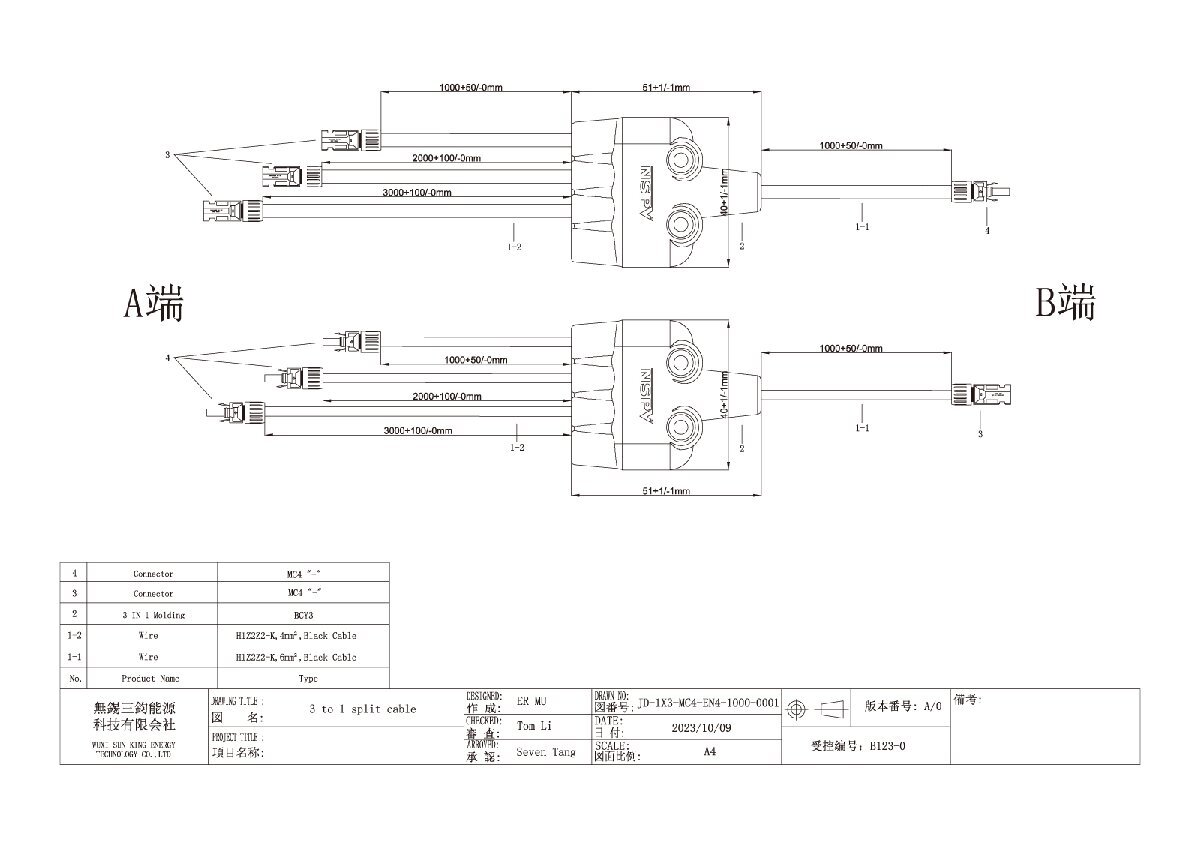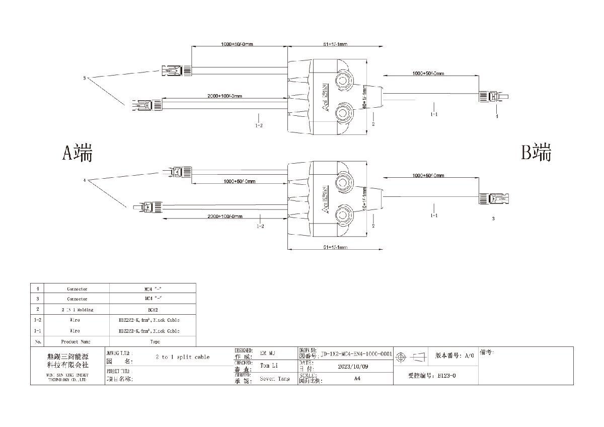 サンキングエナジー製のソーラーパネルを並列接続してパワコンにつなぐPV集電ケーブルです。