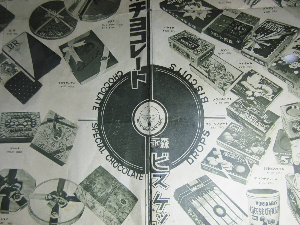 菓子屋から出て来た物で戦前の森永のチョコレートセット..ビスケット詰め合わせ進物品等のカタログになります 時々見るドロップ缶で小ぶりな物当時2種あり25銭と50銭です(昭和3年で貨幣価値は1円で現在の1800円と少し程です)3個詰め合わせ4個詰め合わせ今出てくると相当珍しく高価な物もたくさん記載いされています(ア―ルデコ風のデザインのチョコレートセットもあります) 横53cm程のサイズで折って仕舞われていたため折れ癖と折れ目にそって破れ分かり難いですが小さな穴のような物スレ.折れと小破れ汚れ等はありますのでご了承ください 戦前の価格等の資料になります