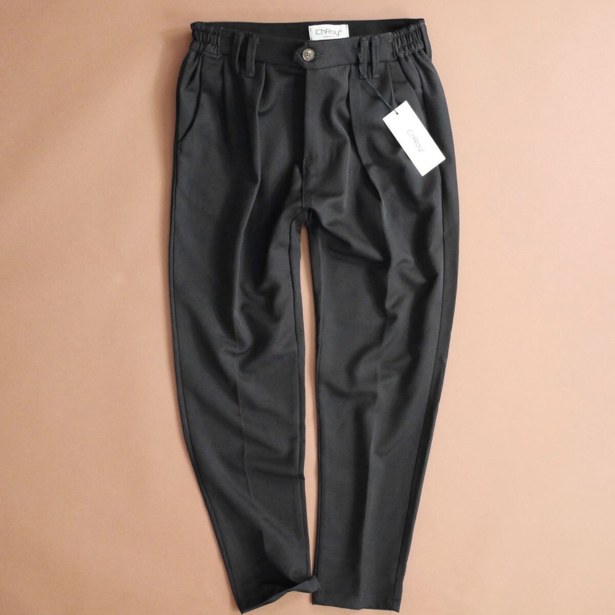 ●イタリア ナポリから、スタイリッシュなデザインが特徴の新ブランド「ChRoy(クロイ)」の、Made in Italyらしいエレガントな雰囲気を纏った、新作2025-26秋冬コレクションのスラックスパンツです。日本未入荷で、当方のみご紹介する、入手困難な限定アイテムとなります。 ●フロントのタックにより、動きやすくエグゼクティブらしいコンフォータブルな腰回りから、裾にかけて美しいテーパードは、今までのテーパードとは異なりトレンドのシルエットでございます。一昔前は、腰回りのフロントがのっぺりしたデザインでデニムパンツのようにぴったりとし、多くのブランド品のアウトレットなどで、現在一昔前のデザインとして割り引かれて販売されていますが、まるで平社員のようで、上級な大人の男性には適さないかと思います。2025年のスタイルでは、こちらのような優雅な腰回りから、すっきりとした裾の落差がより立体的なシルエットを生み出し、さらに脚長効果を視覚的に得られ、美しいラインを演出します。LEONなど多くのファッション誌などでも、多くのモデル着用されるようなシルエットで、ブルネロクチネリなどの最新コレクションでもそうであるように、この先数年、エグゼクティブがご利用いただくボトムに相応しいシルエットでございます。当方ではこのスタイルのボトムを、「コンフォータブルテーパードパンツ」と名付けようと思います。 ●さらに、ウエスト部分は後ろゴム仕様でリラックスした穿き心地を実現し、特にお食事後でも締め付けなく、コンフォータブルでありながら、スラリとしたシルエットをキープいただけますので、一度穿いたら手放せません。 上品なベージュトーンで仕上げられたこちらのパンツは、程よい光沢感と落ち感のあるツイル生地を採用し、柔らかさと適度なハリを両立しております。滑らかな表面感が特徴で、ビジネスでもカジュアルにもドレッシーにも対応する万能な一本です。 ●フロントにはスラッシュポケット、バックには片玉縁ポケットを備え、無駄のないミニマルなデザインに仕上げられています。ベルトループ付きで、タックインスタイルにも最適です。シンプルながらも上質な素材感と仕立てが際立つ、イタリアらしいクラフトマンシップを感じていただける一本でございます。 ●ジャケットとのセットアップスタイルや、シャツ・ニットとの組み合わせなど、オン・オフ問わず幅広いコーディネートに対応。軽やかな履き心地ながら型崩れしにくく、シーズンを問わずご愛用いただけます。 ●ツータック。ポケットあり。ベルトループあり。伸縮性あり。ウエストサイド伸縮ゴム仕様。 ●イタリア製 ●色:ソフトブラック系 ●素材:ポリエステル80% ビスコース17% エラスタン3% ●サイズ:S L XLの中から、お選びいただけます。*ご落札後、取引連絡よりご希望のサイズをお申し付け下さい(後の変更・交換・キャンセルは一切して頂けません)。ご落札後、24時間以内のご連絡の程お願い申し上げます。*下記詳細サイズもご確認の上、よろしくお願いいたします。 ●詳細サイズ(cm)置いた状態で: S *イタリアサイズ46相当。44の方はこちらをお選びください。日本サイズ概ねS-Mサイズ辺りとなりますが、着用時の伸縮により比較的多くの方に適応頂けそうです。下記詳細サイズもご確認の上、よろしくお願いいたします。 ウエスト約:72-82位*着用時伸縮します わたり幅:約31 股上:28 股下:69 裾幅:15 L *イタリアサイズ50相当。日本サイズ概ねLサイズ辺りとなりますが、着用時の伸縮により比較的多くの方に適応頂けそうです。下記詳細サイズもご確認の上、よろしくお願いいたします。 ウエスト約:76-90位*着用時伸縮します わたり幅:約32.5 股上:29 股下:70 裾幅:17 XL *イタリアサイズ52相当。日本サイズ概ねL-XLサイズ辺りとなりますが、着用時の伸縮により比較的多くの方に適応頂けそうです。下記詳細サイズもご確認の上、よろしくお願いいたします。 ウエスト約:80-92位*着用時伸縮します わたり幅:約33.5 股上:29.5 股下:71 裾幅:17 詳細サイズご参考 ※大よその採寸となります。 ※ご落札後取引ナビよりサイズご相談頂くことが無いよう、サイズは事前のお決め頂いた上よろしくお願い致します。 ※ご落札後、ご希望サイズを取引ナビより、必ずお知らせ下さいませ。ご落札後24時間以内を経過後、ご希望サイズをいただけない場合は、取引のキャンセルもしくは、こちらにて任意のサイズにて選択させていただくことがございます(その場合も後のサイズ変更・交換・キャンセルは一切して頂けません)。 ※お品物はタイトルにございますもののみとなり、着合わせのお洋服や小物などがございましても、それらは含まれません。 ※素材の特性上、多少のことはご容赦くださいませ。 ※ご質問は、必ずご入札前にお願いいたします。(ご入札後、ご落札後の取引ナビからのご質問はお避け下さい) ☆☆☆ご連絡・お支払い(かんたん決済)☆☆☆ ご落札後24時間以内に、取