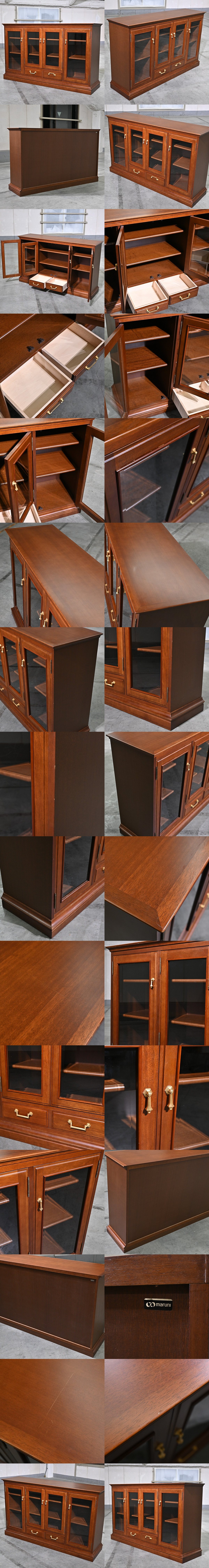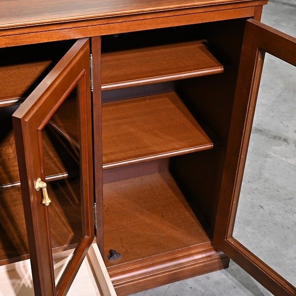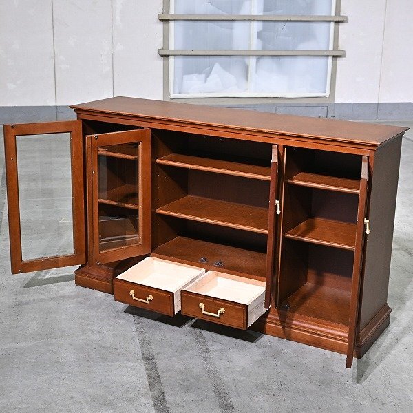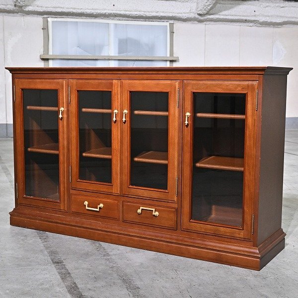 4枚のガラス扉と下段の引き出しを備え、