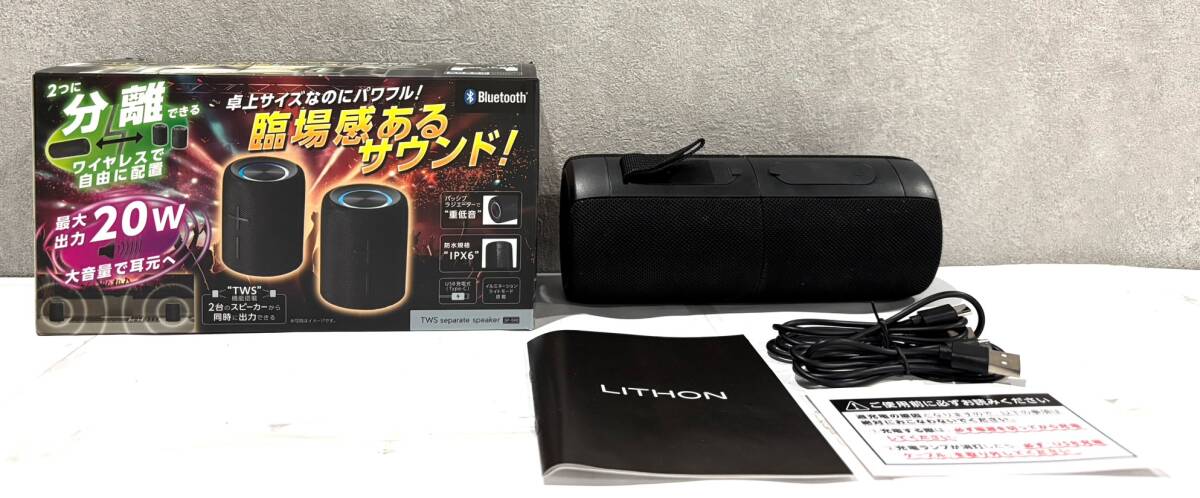 | h580★1円~中古現状品/動作未確認【LITHON ライソン】TWS セパレートスピーカー SP-040 Bluetooth USB Type-C 防水 2台同時出力 音響機器 |