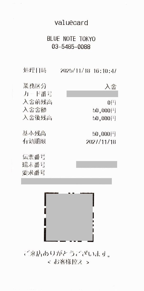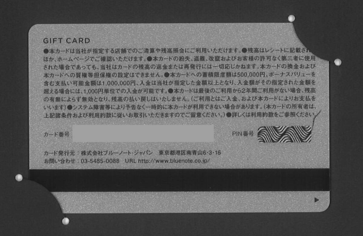 有効期限は、「2027年11月18日」です。 ブルーノート東京(南青山)、コットンクラブ(丸の内)でのご清算にご利用いただけます。 |