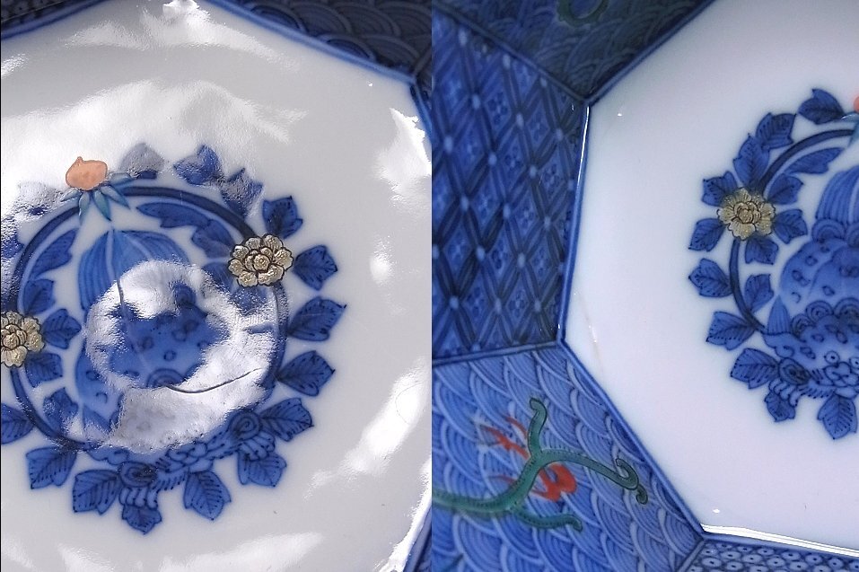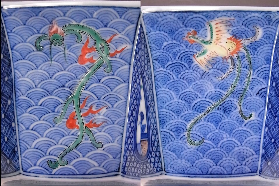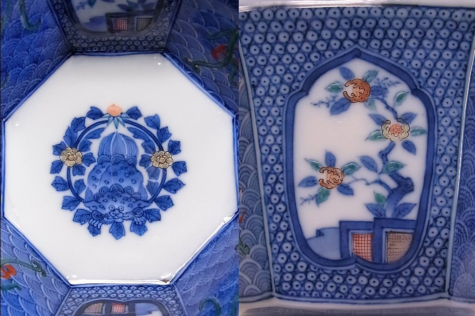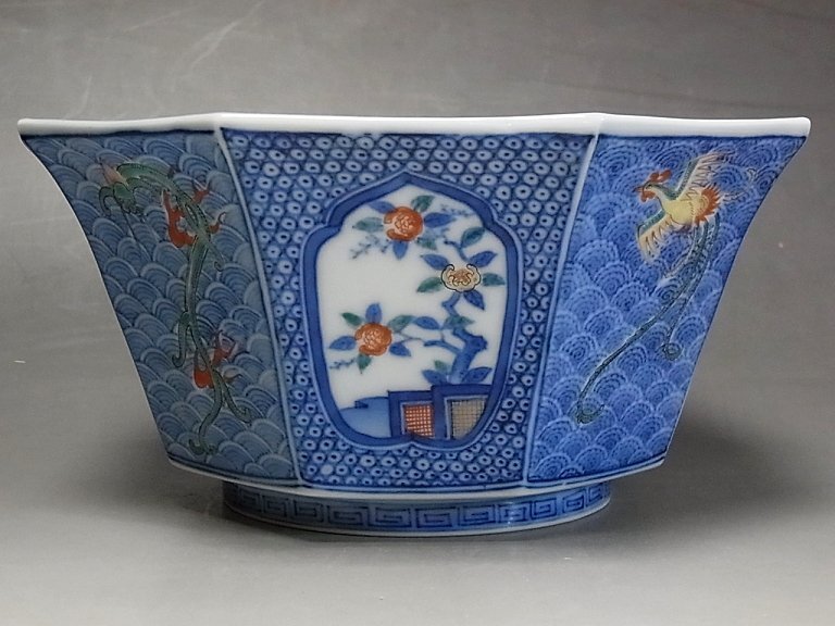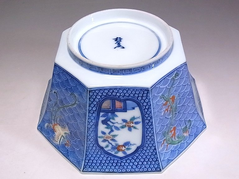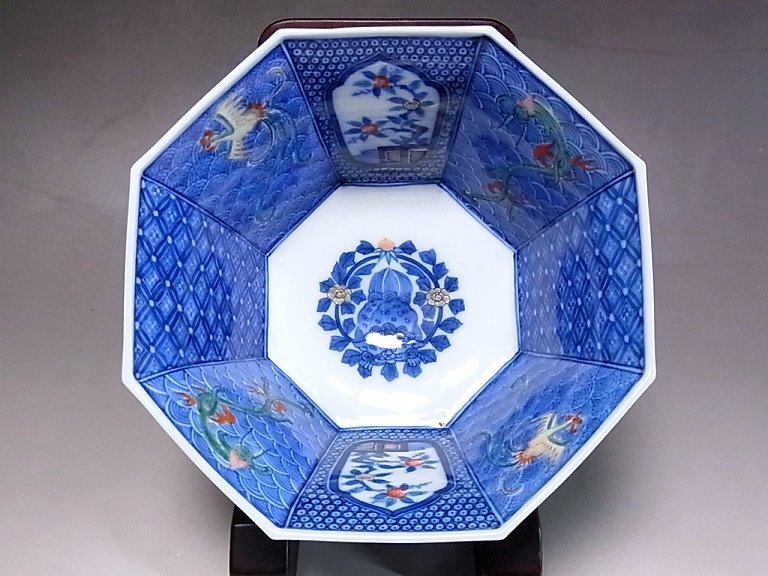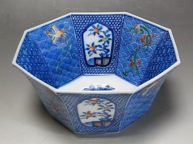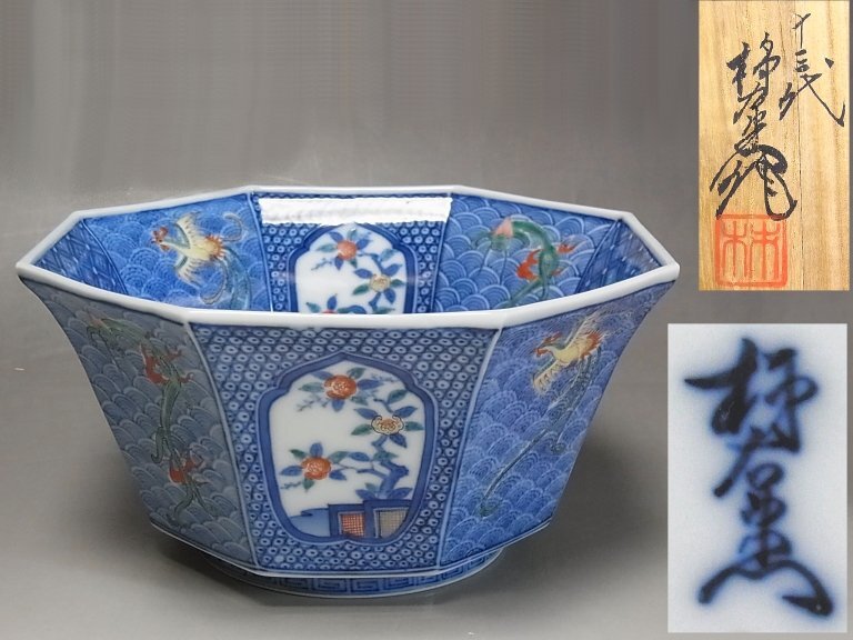 | 斉藤商店★十三代 酒井田柿右衛門 染錦地文 八角鳳凰龍菓子器 八角鉢★お茶道具茶会懐石 |