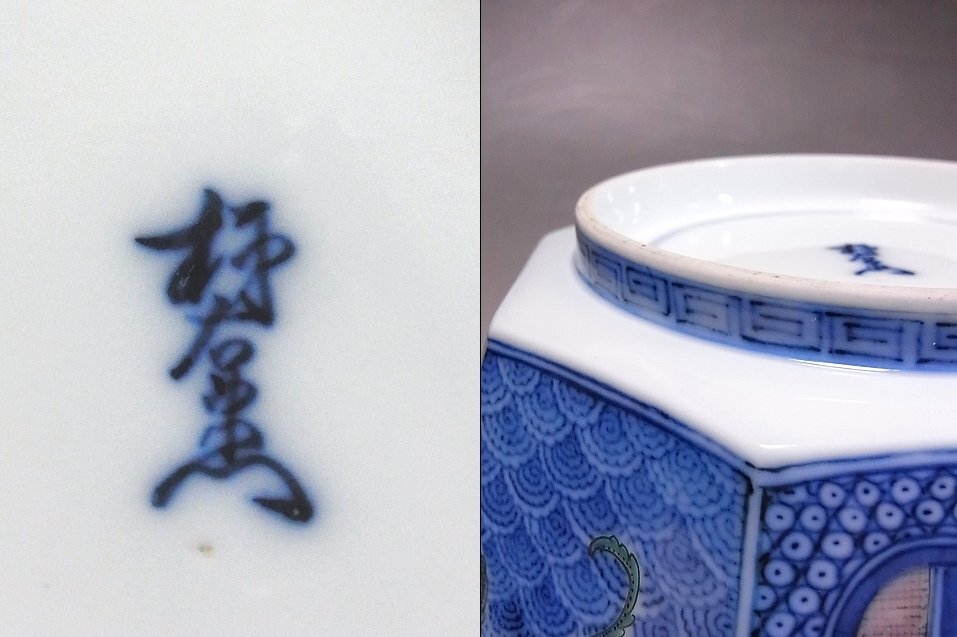 十三代 酒井田柿右衛門 染錦地文 八角鳳凰龍菓子器 八角鉢でございます。 見込み部にウォータースポット(最後写真左参考)、 見込み部に窯傷 (八角にするための張り合わせ部の上薬が薄く、変色してニュウのように見えます。 ご使用には問題ありません。最後写真右参考) その他に気になるような難などは見られず至って良好な状態です。 経年保管のお品ですので、保管に伴う経年変化はご理解ください。 高台内に「柿右衛門」の銘を確認致しました。 お品寸約 最大径 20.8cm 高 10cm 共箱でございます。 お品は保障させていただきますので、レブリカや贋作の類だった場合や 説明と違う状態だった場合は返品はもちろん、送料や振込み手数料を当店で 負担させていただきます。 どうぞ宜しくお願い致します。 ※出品者の齊藤商店は創業75年の美術商です。ホームページは【こちら】をご覧ください。(外部サイト) 他にもいろいろと出品しておりますので下記バナーをご覧下さいませ。 ![]() |
