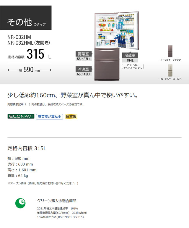 | メーカー・型式 | パナソニック / NR-C32HM-T | |